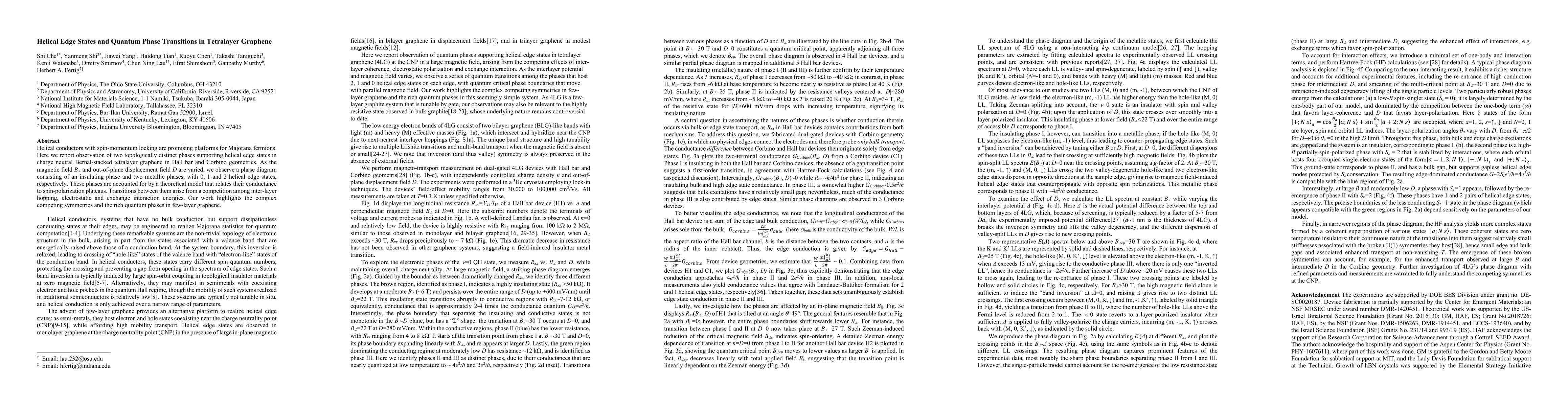 This study observes two topological phases in charge-neutral tetralayer graphene exhibiting helical edge states, linked to potential Majorana fermions. The phases transition between insulating and metallic states driven by magnetic and displacement fields, underpinned by a theoretical model correlating conductance to spin-polarization plateaus.