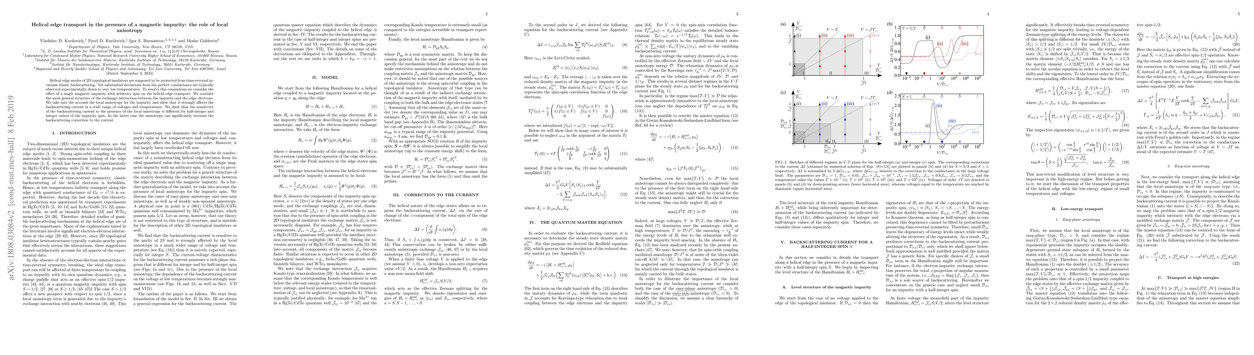 This paper investigates how a magnetic impurity with local anisotropy affects helical edge transport in 2D topological insulators, revealing that the impurity's local anisotropy can significantly alter backscattering current, with different sensitivities depending on whether the impurity spin is half-integer or integer.