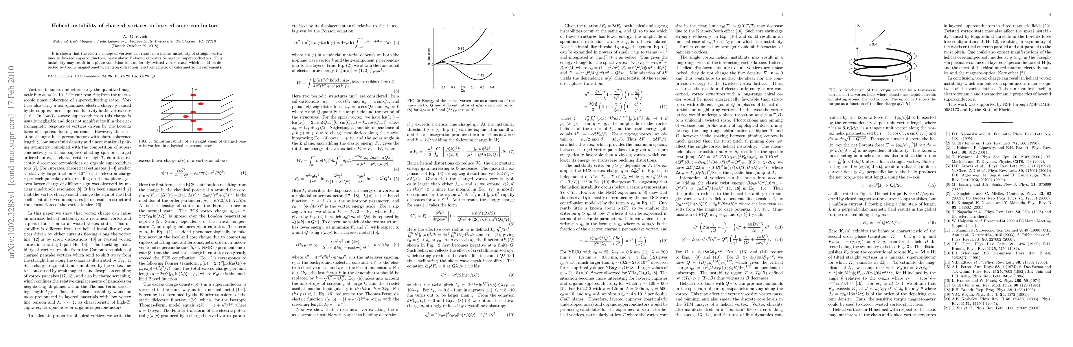 This study reveals that the electric charge of vortices in layered superconductors like Bi-based cuprates or organic superconductors can induce a helical instability, potentially leading to a phase transition to a uniformly twisted vortex state. Detection methods include torque magnetometry, neutron diffraction, electromagnetic, or calorimetric measurements.