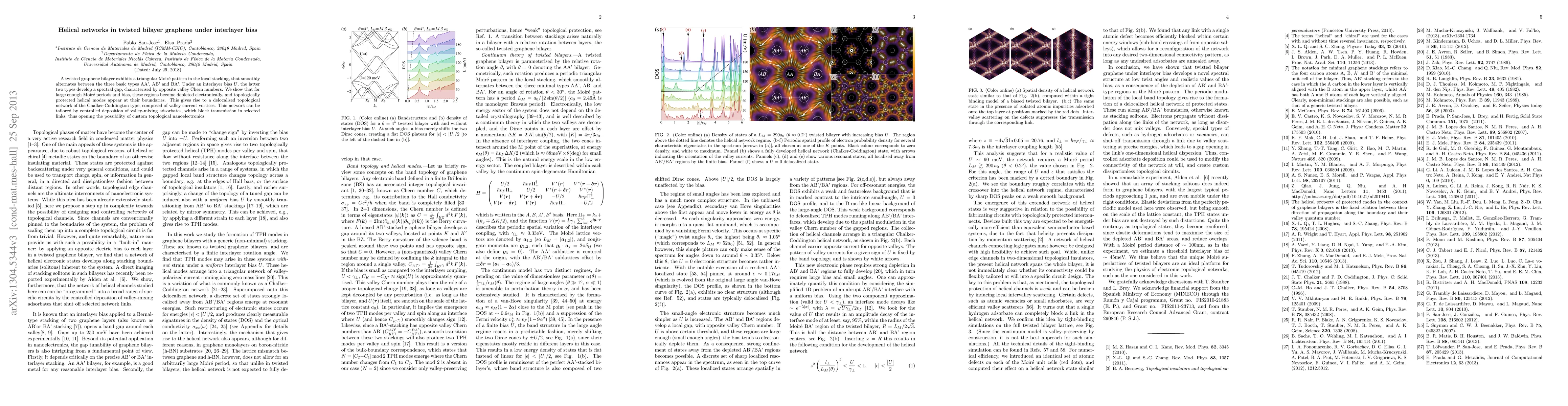 Summary: Twisted bilayer graphene under interlayer bias forms helical networks at the boundaries of depleted regions, creating a topological network of valley current vortices. This network can be manipulated by valley-mixing adsorbates, enabling the potential for custom topological nanoelectronics.