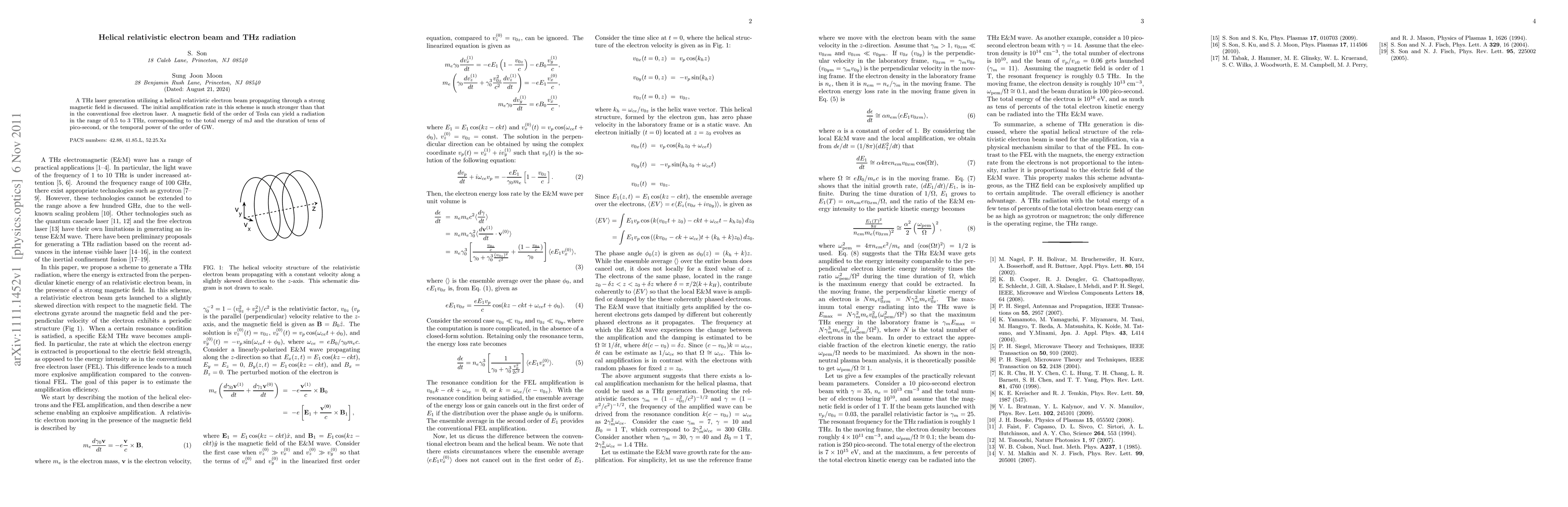 The initial amplification rate is stronger than conventional free electron lasers, yielding radiation in the 0.5-3 THz range.