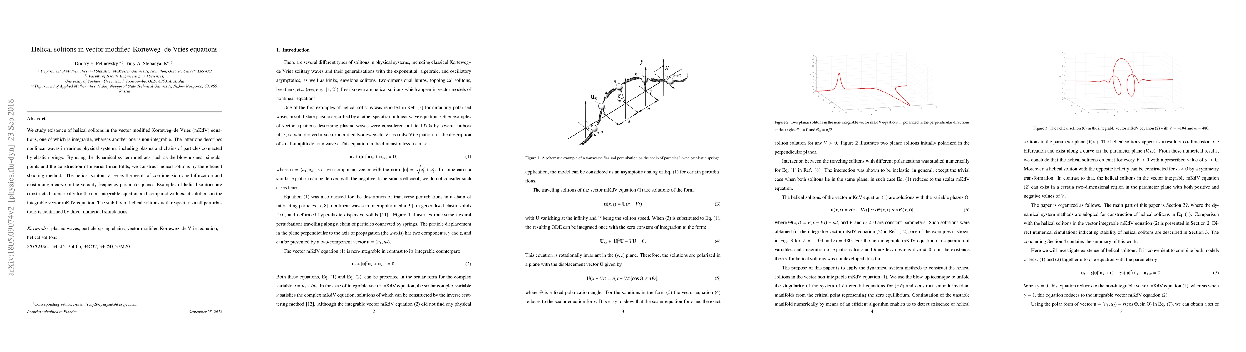 This paper investigates the existence of helical solitons in vector modified Korteweg-de Vries (mKdV) equations, employing dynamical system methods to construct them. Helical solitons are shown to arise via co-dimension one bifurcation and are stable under small perturbations, with numerical examples provided for both integrable and non-integrable cases.