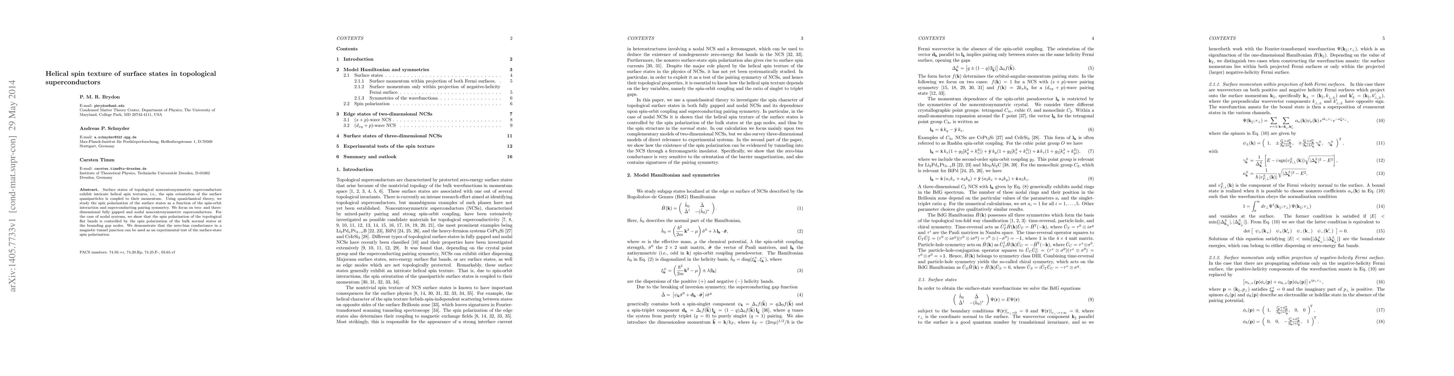 This paper investigates the helical spin textures in surface states of topological noncentrosymmetric superconductors, revealing their coupling between spin orientation and momentum. It employs quasiclassical theory to explore spin polarization variations influenced by spin-orbit interaction and pairing symmetry, focusing on fully gapped and nodal systems, and suggests that zero-bias conductance in magnetic tunnel junctions can validate these theoretical findings.