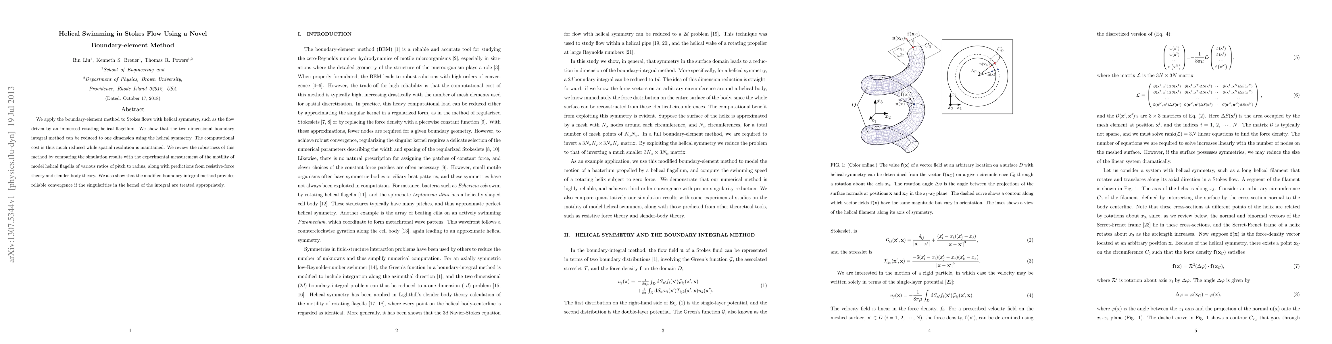 This paper introduces a novel boundary-element method for analyzing helical swimming in Stokes flow, significantly reducing computational cost while maintaining spatial resolution. The method's robustness is validated through comparisons with experimental data and theoretical predictions.
