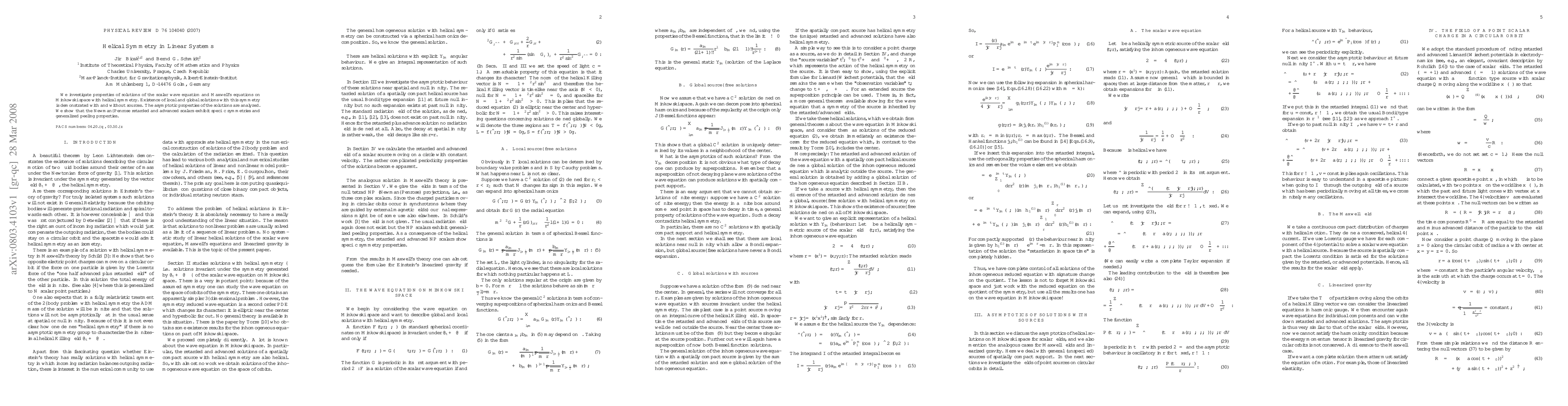 The paper presents detailed mathematical analysis of helical symmetry in linear systems, providing insights into the asymptotic behavior of solutions to wave equations and Maxwell's equations.