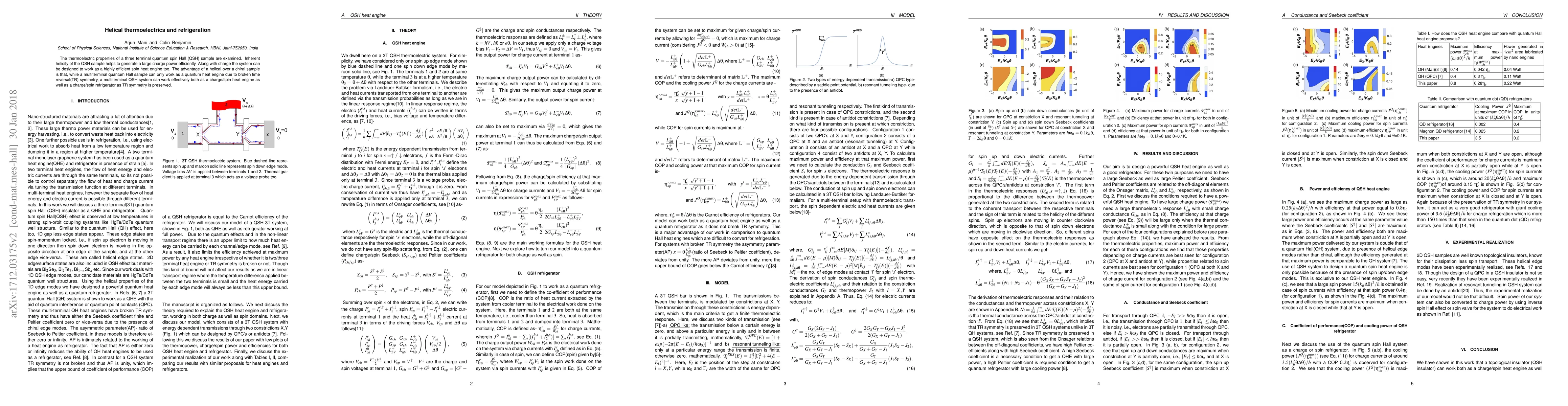 The thermoelectric properties of a three terminal quantum spin Hall (QSH) sample are examined. Inherent helicity of the QSH sample helps to generate a large charge power efficiently. Along with charge the system can be designed to work as a highly efficient spin heat engine too. The advantage of a helical over a chiral sample is that, while a multiterminal quantum Hall sample can only work as a quantum heat engine due to broken time reversal(TR) symmetry, a multiterminal QSH system can work effectively both as a charge/spin heat engine as well as a charge/spin refrigerator as TR symmetry is preserved.