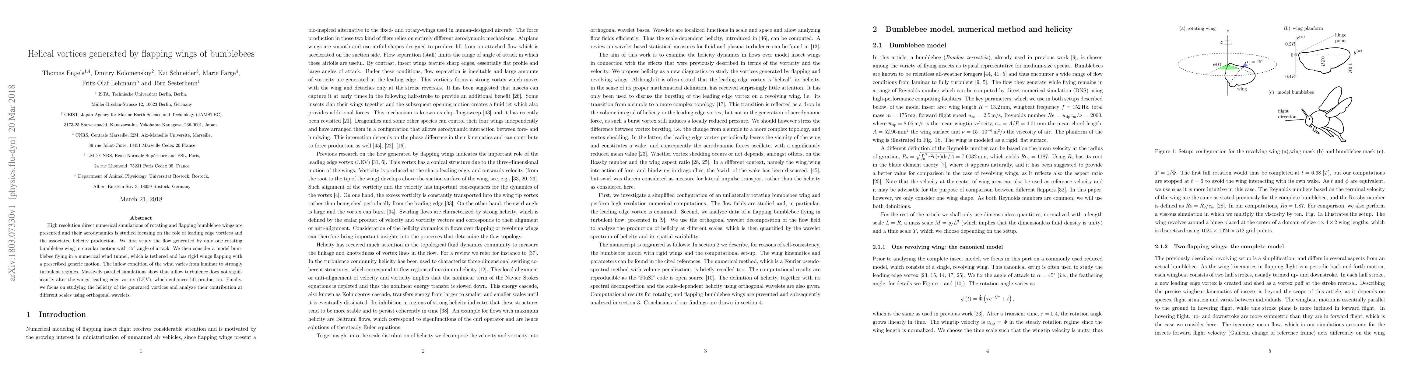 The use of high-resolution direct numerical simulations to analyze the helical vortices generated by flapping wings of bumblebees, providing insights into the role of helicity in lift production.