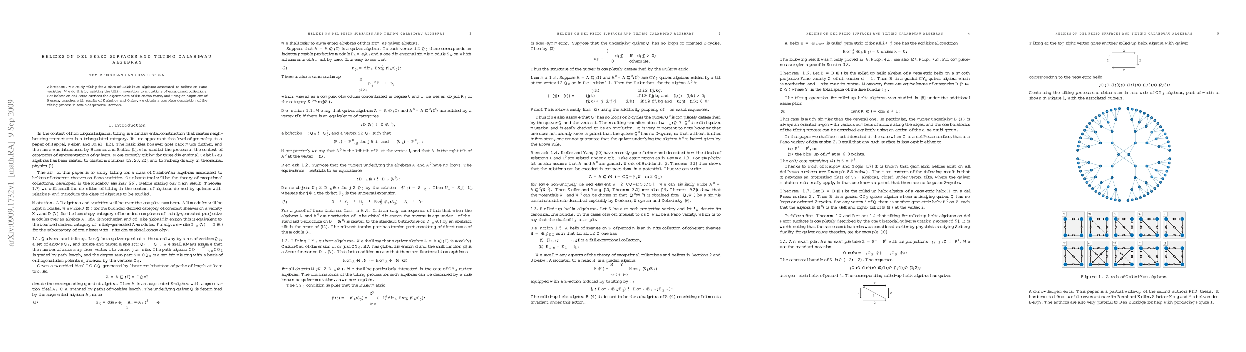 We study tilting for a class of Calabi-Yau algebras associated to helices on Fano varieties. We do this by relating the tilting operation to mutations of exceptional collections. For helices on del Pezzo surfaces the algebras are of dimension three, and using an argument of Herzog, together with results of Kuleshov and Orlov, we obtain a complete description of the tilting process in terms of quiver mutations.