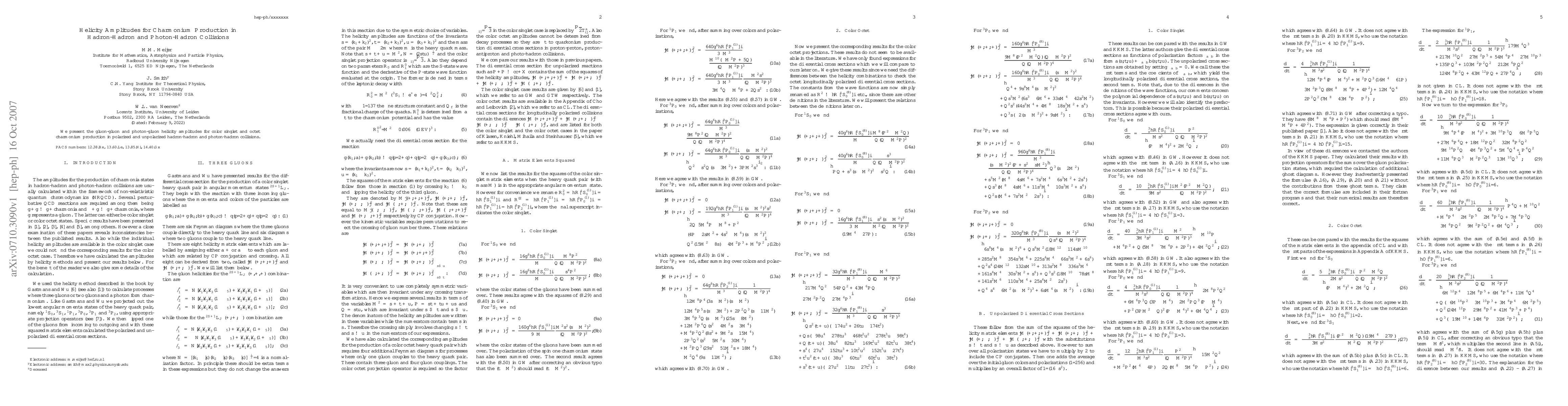 We present the gluon-gluon and photon-gluon helicity amplitudes for color singlet and octet charmonium production in polarized and unpolarized hadron-hadron and photon-hadron collisions.