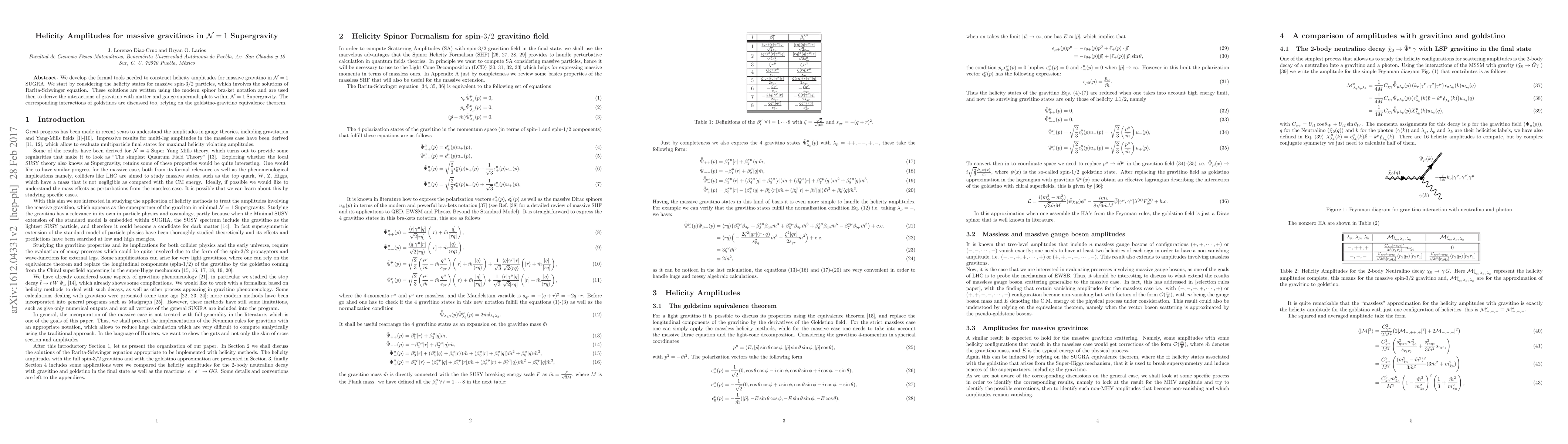 Researchers developed tools to calculate helicity amplitudes for massive gravitinos in N=1 Supergravity, enabling the study of interactions between gravitinos and matter/gauge particles.