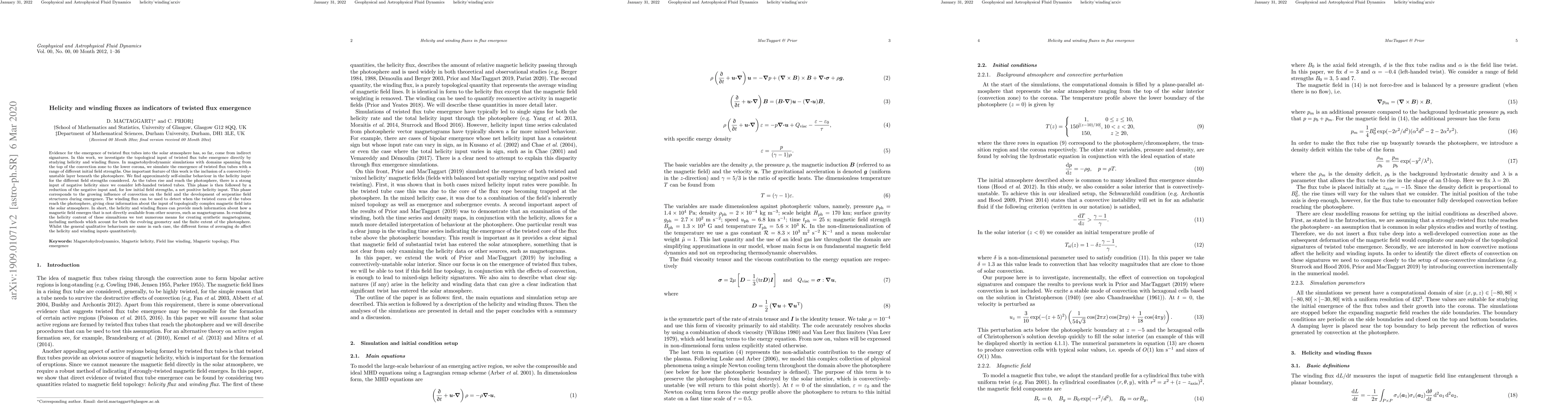 This paper investigates the emergence of twisted flux tubes in the solar atmosphere using magnetohydrodynamic simulations, focusing on helicity and winding fluxes as indicators. The study finds self-similar helicity input across different field strengths, with a strong negative helicity input as the tubes reach the photosphere, followed by a net positive helicity input due to convection influence. The winding flux effectively detects when twisted cores reach the photosphere, providing insights into the emergence of complex magnetic fields.