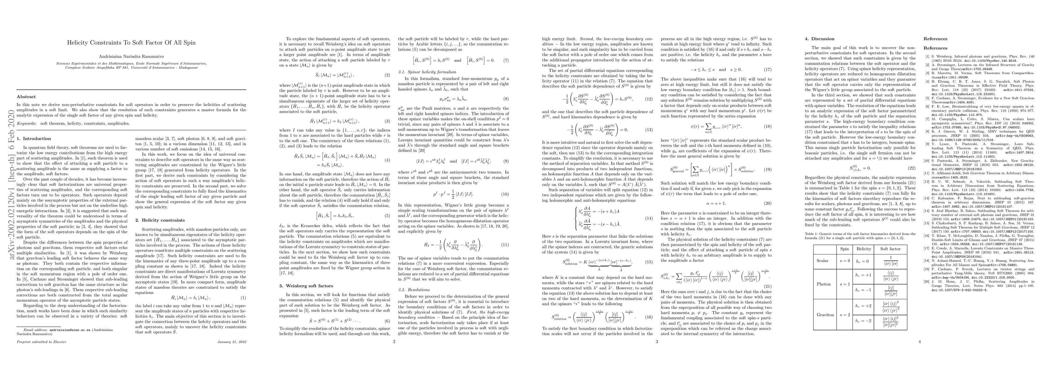 Researchers derived non-perturbative constraints for soft operators to preserve helicities in scattering amplitudes, leading to a master formula for the single soft factor of any given spin and helicity.
