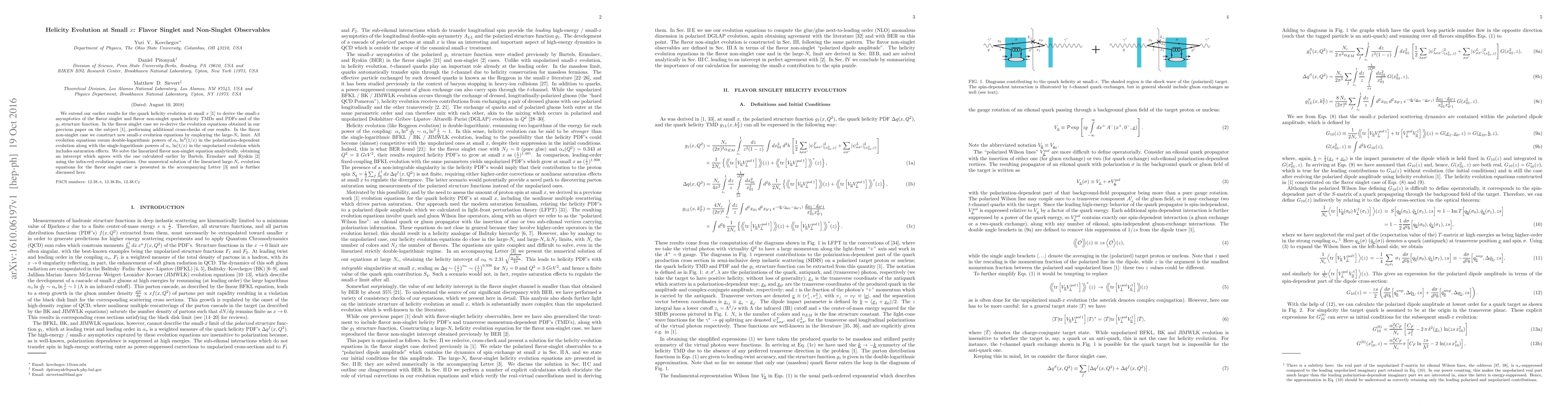 This paper extends previous results on the quark helicity evolution at small $x$, deriving new small-$x$ asymptotics for flavor singlet and non-singlet quark helicity TMDs, PDFs, and the $g_1$ structure function. It re-derives and cross-checks singlet evolution equations and constructs new non-singlet equations using the large-$N_c$ limit, solving the linearized non-singlet equation analytically.