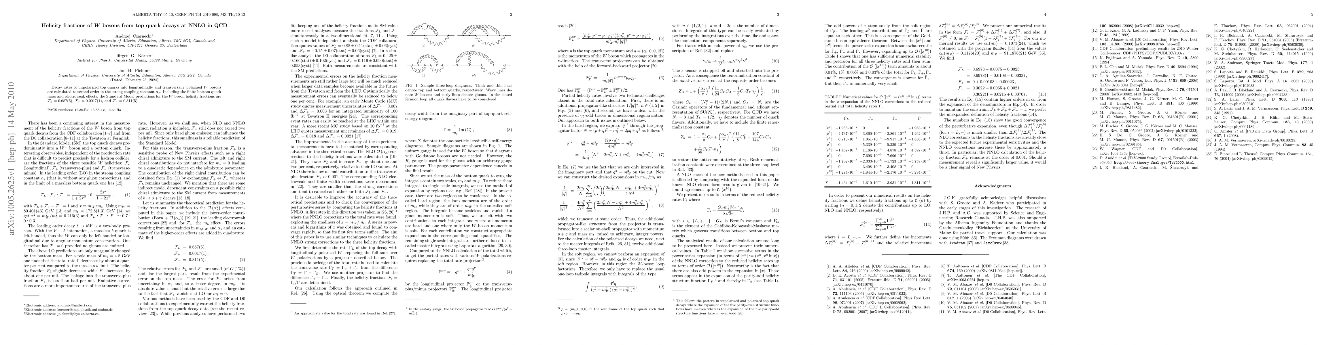 Decay rates of unpolarized top quarks into longitudinally and transversally polarized W bosons are calculated to second order in the strong coupling constant alpha_s. Including the finite bottom quark mass and electroweak effects, the Standard Model predictions for the W boson helicity fractions are F_L=0.687(5), F_+=0.0017(1), and F_-=0.311(5).