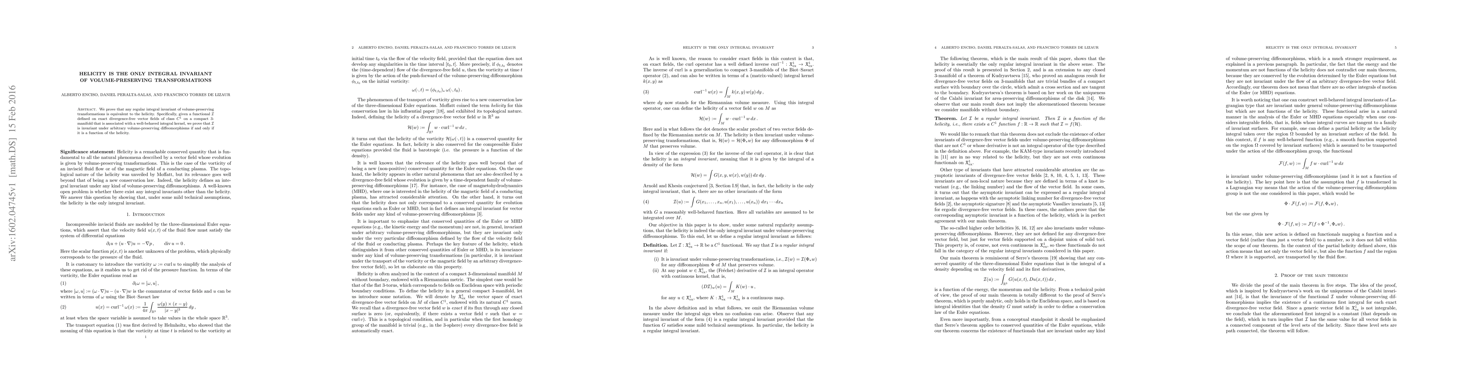This paper proves that any integral invariant of volume-preserving transformations is equivalent to helicity, a fundamental property in vector calculus.