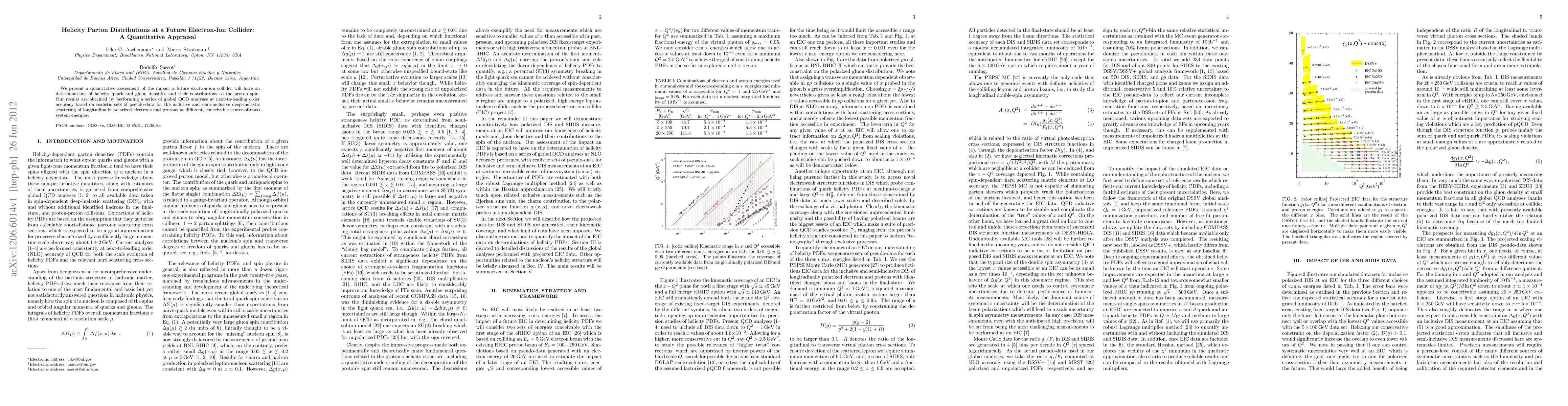 This paper quantitatively assesses the future electron-ion collider's impact on determining helicity parton distributions, focusing on quark and gluon contributions to the proton spin, using global QCD analyses at next-to-leading order accuracy. Realistic pseudo-data simulations for deep-inelastic scattering experiments are employed.