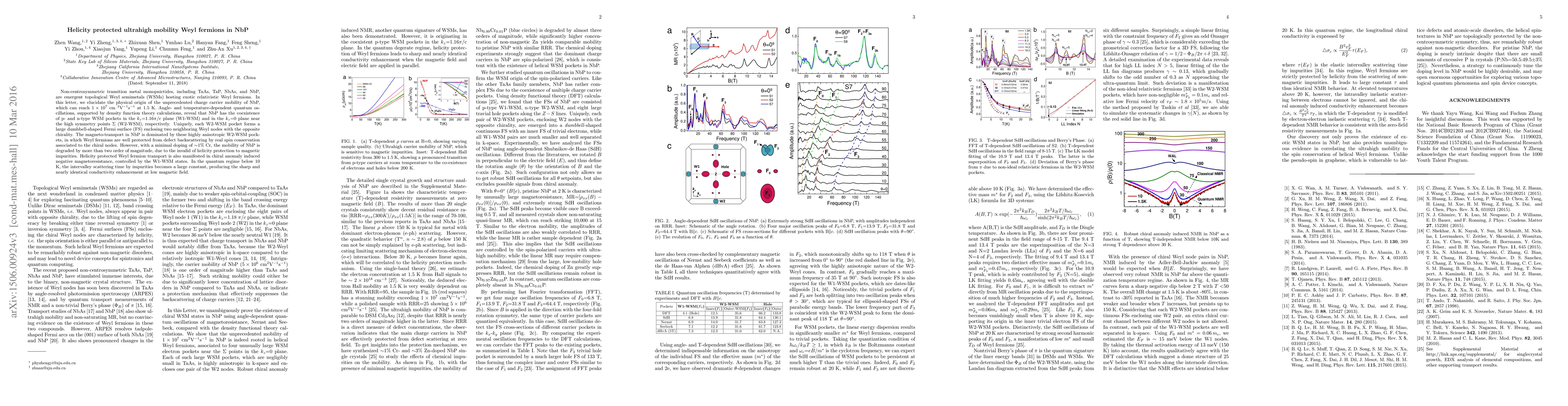 This paper investigates the ultrahigh charge carrier mobility in NbP, attributing it to helicity-protected Weyl fermions in topological Weyl semimetal pockets. The mobility reaches $1\times10^{7}$ cm$^{2}$V$^{-1}$s$^{-1}$ at 1.5 K, protected by spin conservation, but degrades significantly upon doping with Cr due to loss of helicity protection against magnetic impurities.