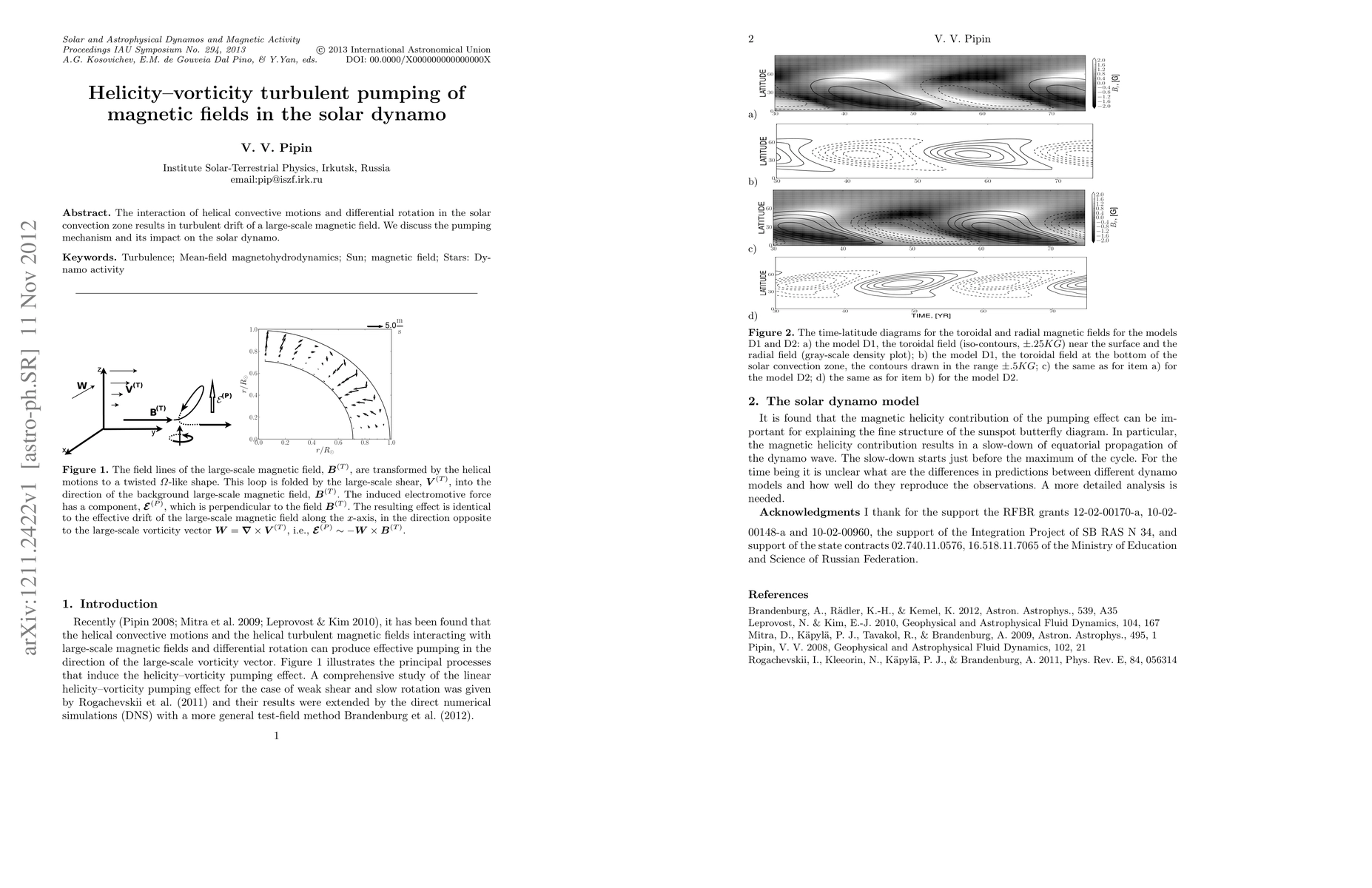 The work builds upon previous research by Rogachevskii et al. (2011) and Brandenburg et al. (2012), providing a more detailed understanding of the interaction between helical motions, turbulence, and large-scale magnetic fields in the context of solar dynamo activity.