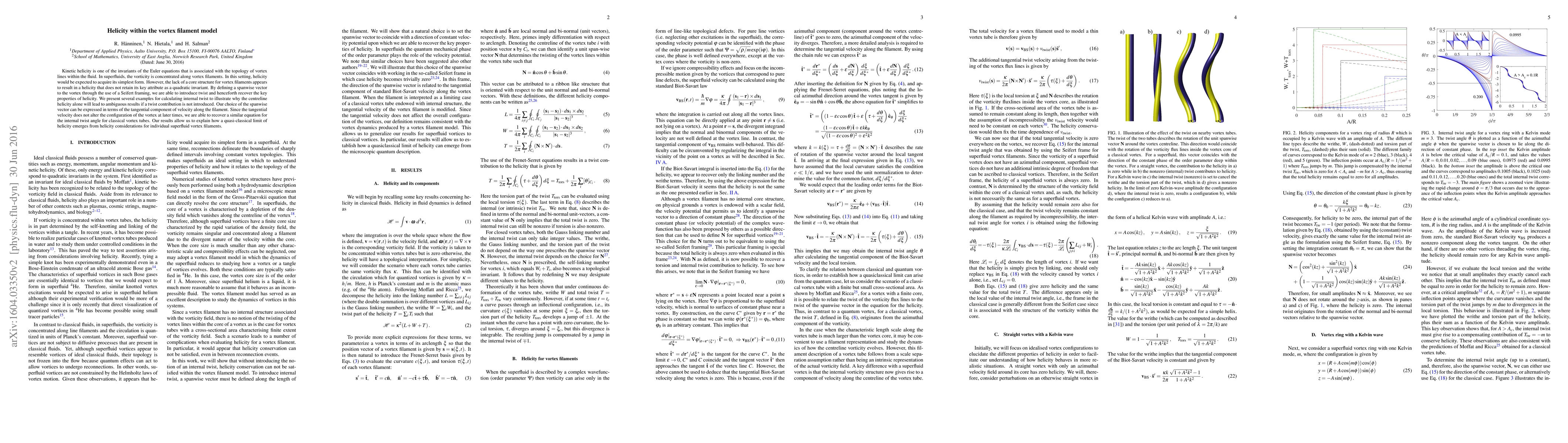 This paper explores how kinetic helicity, an invariant in fluid dynamics, behaves in superfluid vortex filaments. By introducing a spanwise vector via Seifert framing, the authors recover the key properties of helicity, demonstrating that internal twist is crucial for accurate helicity calculations.