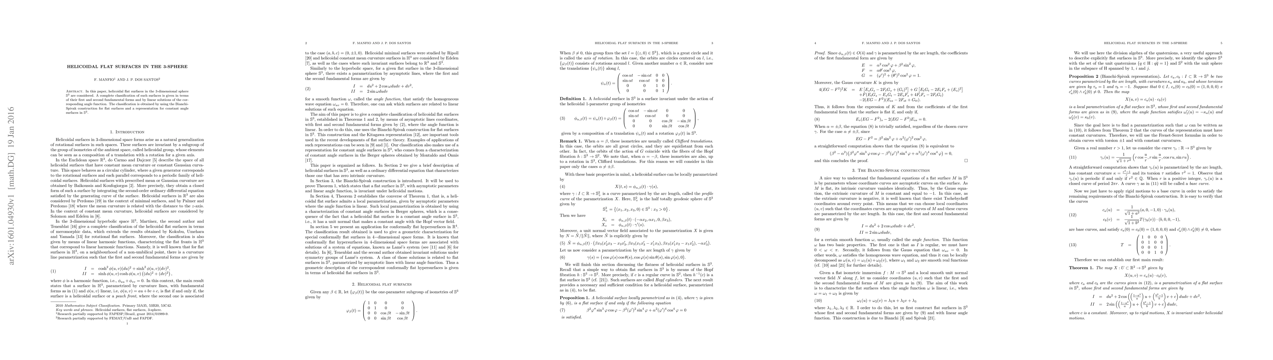 The paper presents a detailed classification and parametrization of helicoidal flat surfaces in S3 using quaternionic algebra and the Bianchi-Spivak construction, providing a comprehensive framework for understanding such surfaces.