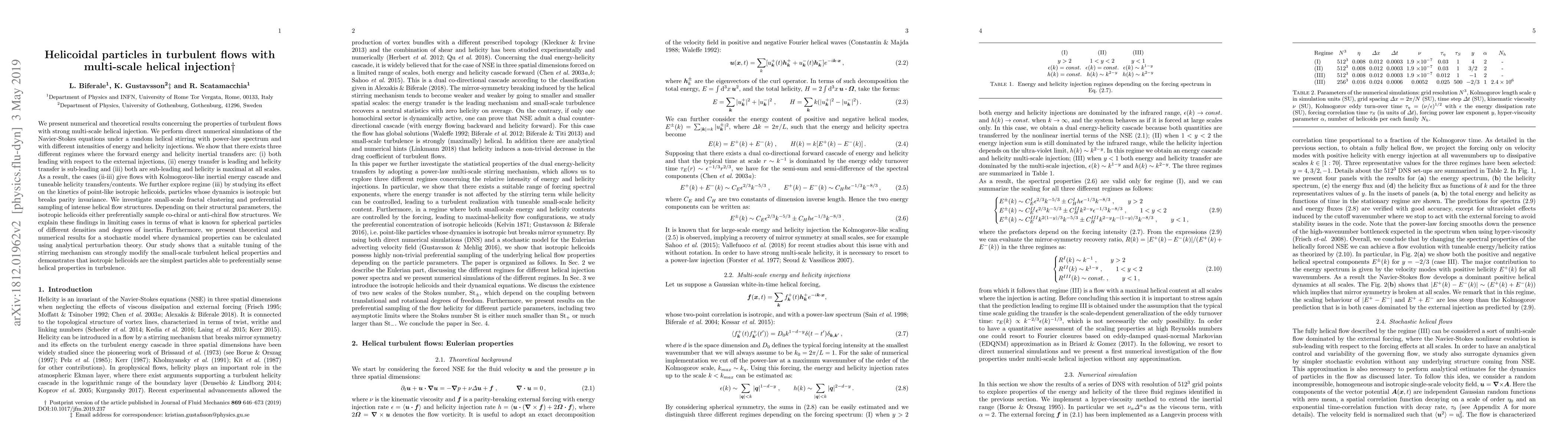 This paper investigates the dynamics of turbulent flows with multi-scale helical injection, revealing three distinct regimes of energy and helicity transfer. It finds that isotropic helicoids preferentially sample either co-chiral or anti-chiral flow structures, depending on their parameters, and suggests that tuning the stirring mechanism can significantly alter turbulent helical properties.