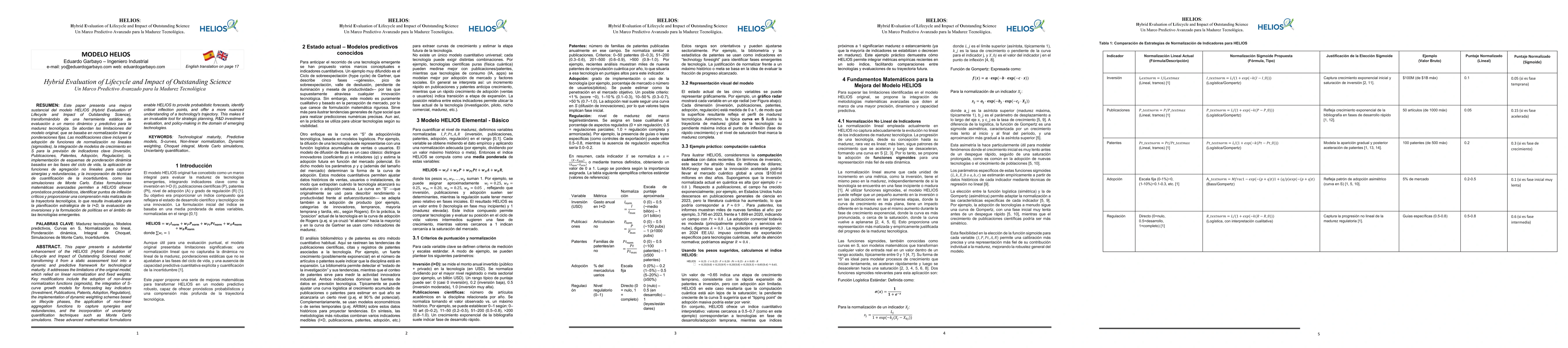 This paper presents a substantial enhancement of the HELIOS (Hybrid Evaluation of Lifecycle and Impact of Outstanding Science) model, transforming it from a static assessment tool into a dynamic and predictive framework for technological maturity. It addresses the limitations of the original model, which relied on linear normalization and fixed weights. Key modifications include the adoption of non-linear normalization functions (sigmoids), the integration of S-curve growth models for forecasting key indicators (Investment, Publications, Patents, Adoption, Regulation), the implementation of dynamic weighting schemes based on lifecycle phases, the application of non-linear aggregation functions to capture synergies and redundancies, and the incorporation of uncertainty quantification techniques such as Monte Carlo simulations. These advanced mathematical formulations enable HELIOS to provide probabilistic forecasts, identify critical inflection points, and offer a more nuanced understanding of a technology's trajectory. This makes it an invaluable tool for strategic planning, R&D investment evaluation, and policy-making in the domain of emerging technologies.