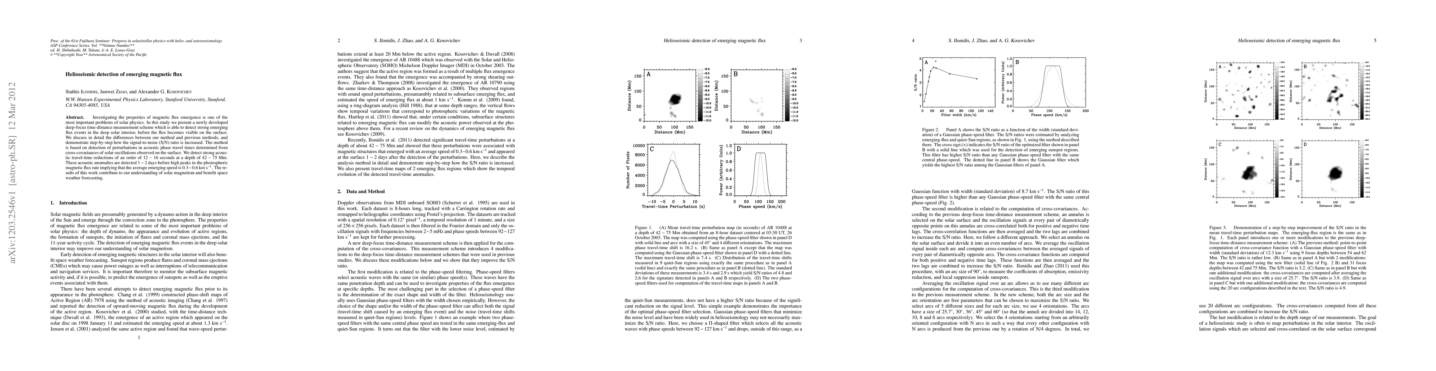 Investigating the properties of magnetic flux emergence is one of the most important problems of solar physics. In this study we present a newly developed deep-focus time-distance measurement scheme which is able to detect strong emerging flux events in the deep solar interior, before the flux becomes visible on the surface. We discuss in detail the differences between our method and previous methods, and demonstrate step-by-step how the signal-to-noise (S/N) ratio is increased. The method is based on detection of perturbations in acoustic phase travel times determined from cross-covariances of solar oscillations observed on the surface. We detect strong acoustic travel-time reductions of an order of 12 - 16 seconds at a depth of 42 - 75 Mm. These acoustic anomalies are detected 1 - 2 days before high peaks in the photospheric magnetic flux rate implying that the average emerging speed is 0.3 - 0.6 km/s. The results of this work contribute to our understanding of solar magnetism and benefit space weather forecasting.