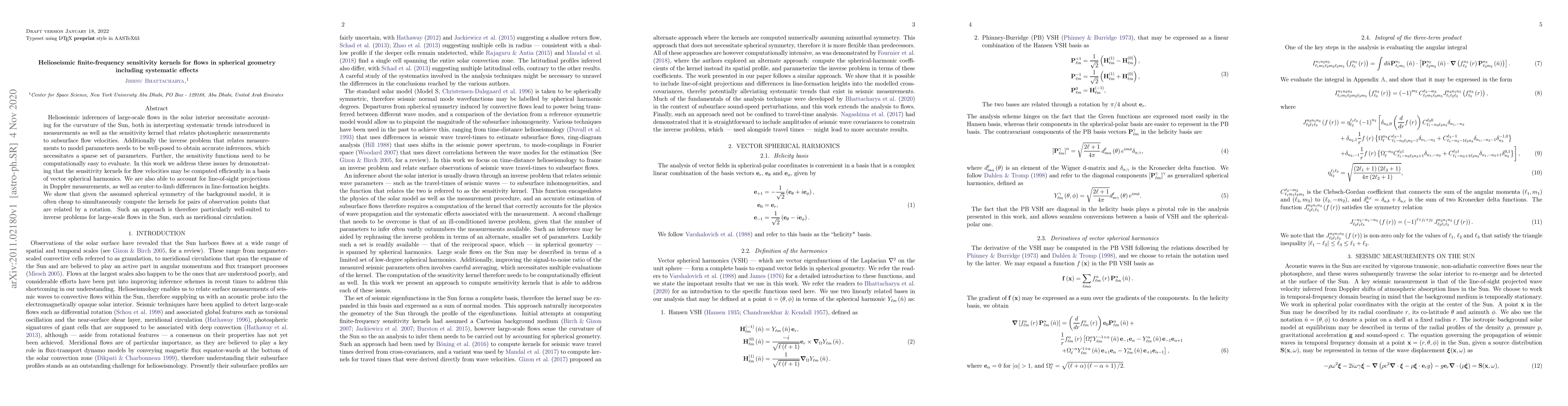 Helioseismic inferences of large-scale flows in the solar interior necessitate accounting for the curvature of the Sun, both in interpreting systematic trends introduced in measurements as well as the sensitivity kernel that relates photospheric measurements to subsurface flow velocities. Additionally the inverse problem that relates measurements to model parameters needs to be well-posed to obtain accurate inferences, which necessitates a sparse set of parameters. Further, the sensitivity functions need to be computationally easy to evaluate. In this work we address these issues by demonstrating that the sensitivity kernels for flow velocities may be computed efficiently in a basis of vector spherical harmonics. We are also able to account for line-of-sight projections in Doppler measurements, as well as center-to-limb differences in line-formation heights. We show that given the assumed spherical symmetry of the background model, it is often cheap to simultaneously compute the kernels for pairs of observation points that are related by a rotation. Such an approach is therefore particularly well-suited to inverse problems for large-scale flows in the Sun, such as meridional circulation.