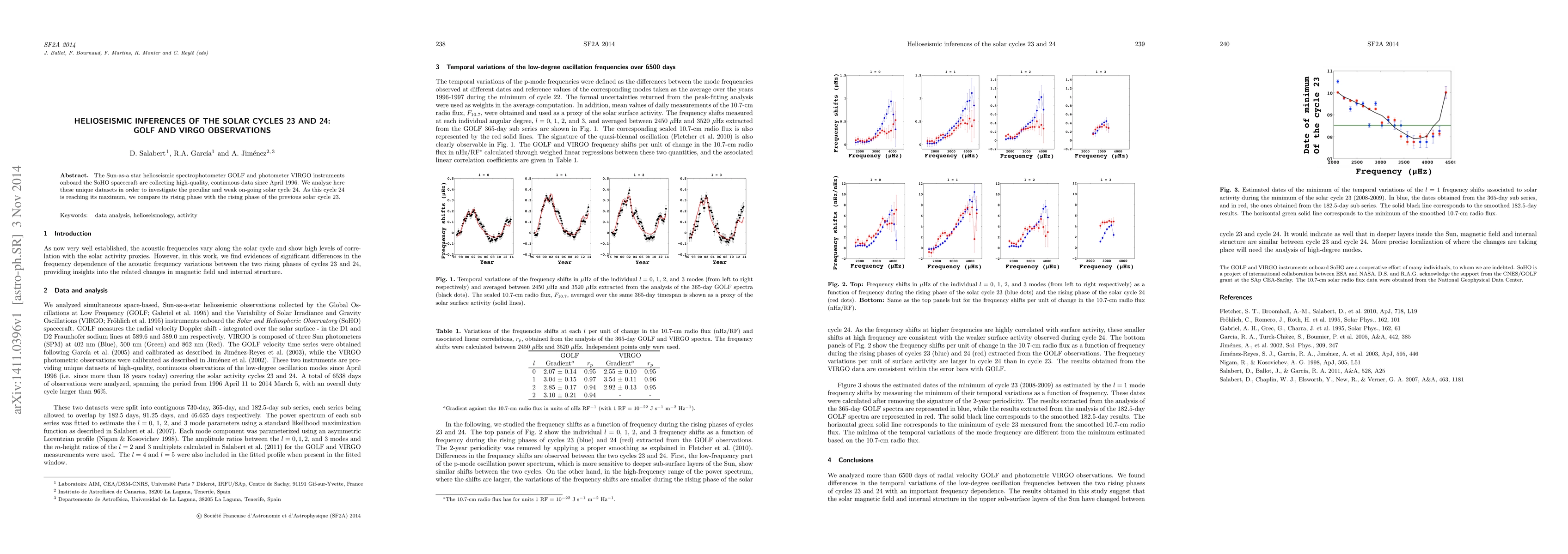 This study analyzes GOLF and VIRGO data from the SoHO spacecraft to compare the rising phases of solar cycles 23 and 24, focusing on the peculiar characteristics of the weak cycle 24. The findings provide insights into the differences between these two solar cycles through helioseismic observations.