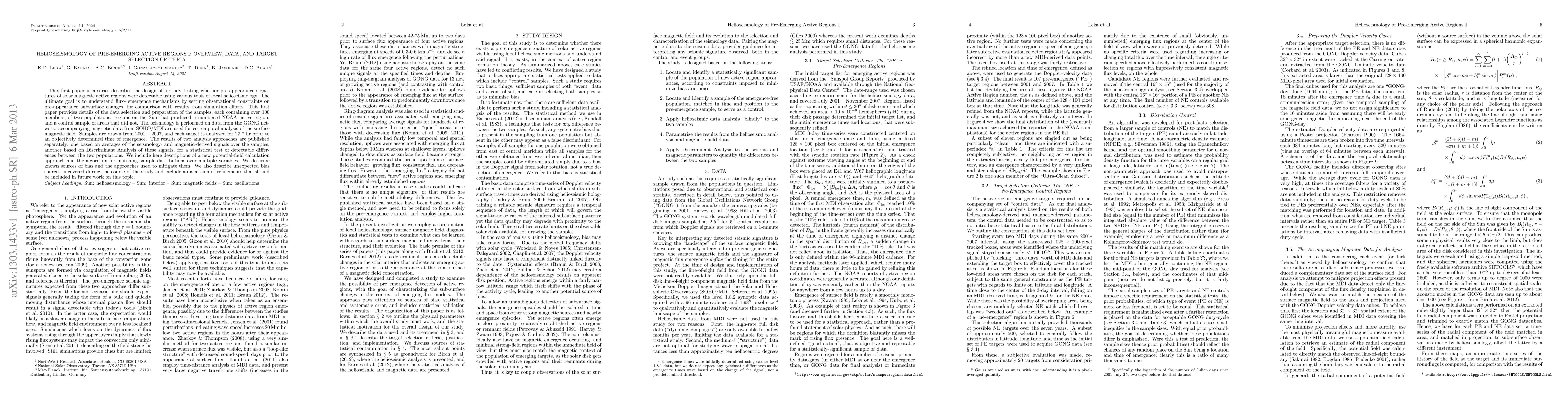This paper outlines a study using local helioseismology to detect pre-emergence signatures of solar magnetic active regions, aiming to understand flux-emergence mechanisms. It details data selection and preparation for two populations: regions that produced NOAA active regions and control areas that did not, analyzed over 2001-2007.