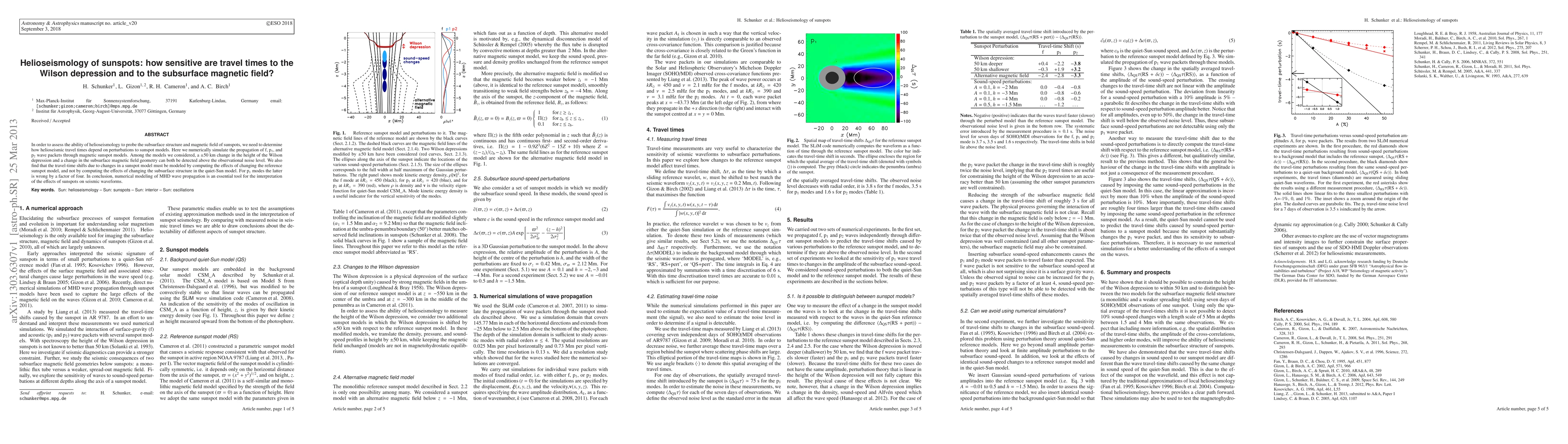 This research investigates how helioseismic travel times are affected by changes in sunspot models, specifically the Wilson depression and subsurface magnetic fields. The study finds that both a 50 km change in the Wilson depression height and alterations in the magnetic field geometry can be detected, emphasizing the importance of numerical modeling for interpreting sunspot effects on seismic waveforms.