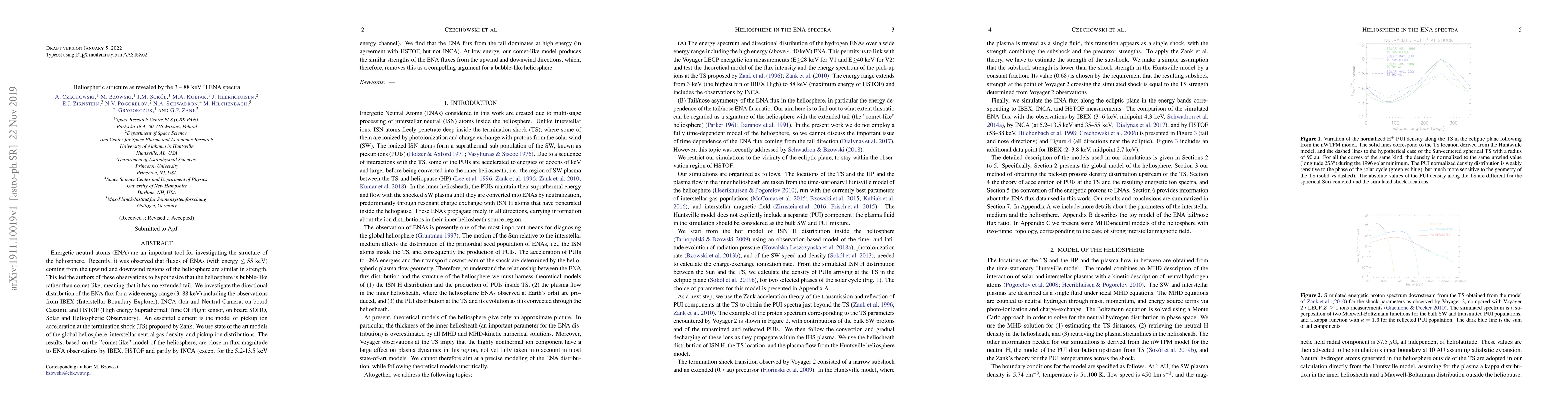 This study investigates the structure of the heliosphere using energetic neutral atoms (ENA) spectra from 3-88 keV energies. It finds that the ENA flux from the tail dominates at high energy and produces similar strengths of the upwind and downwind directions at low energy, suggesting a comet-like heliosphere.
