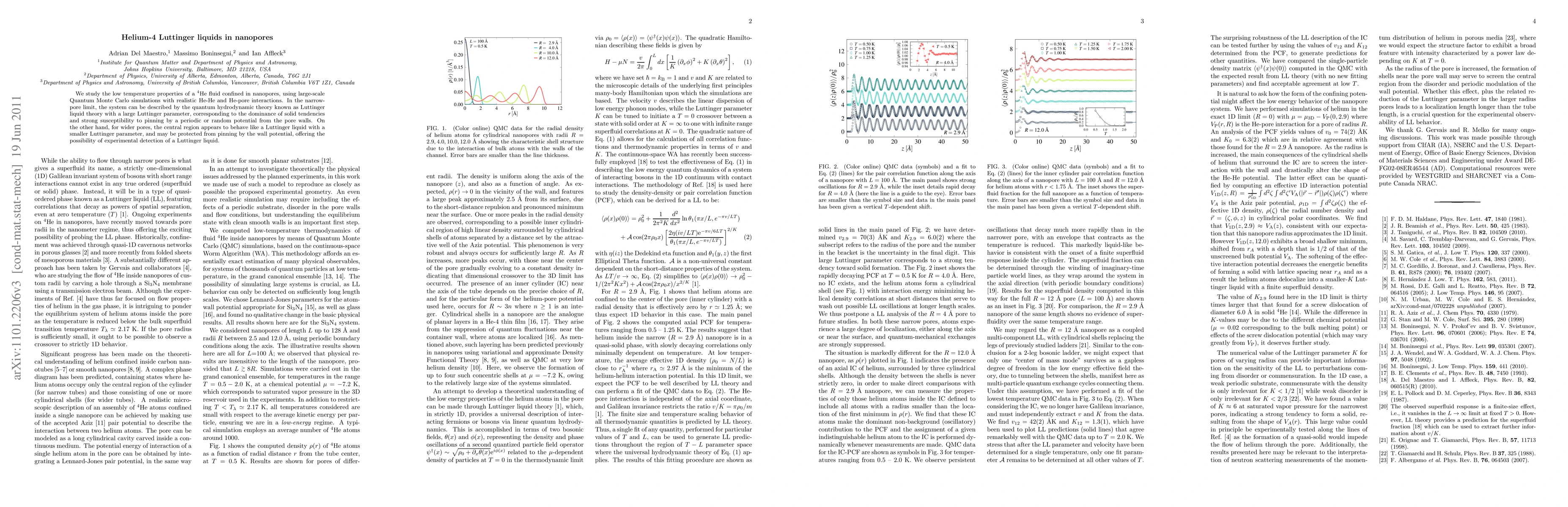 The paper presents a detailed analysis of helium-4 behavior in nanopores using Quantum Monte Carlo simulations, providing insights into Luttinger liquid theory applications in confined quantum systems.