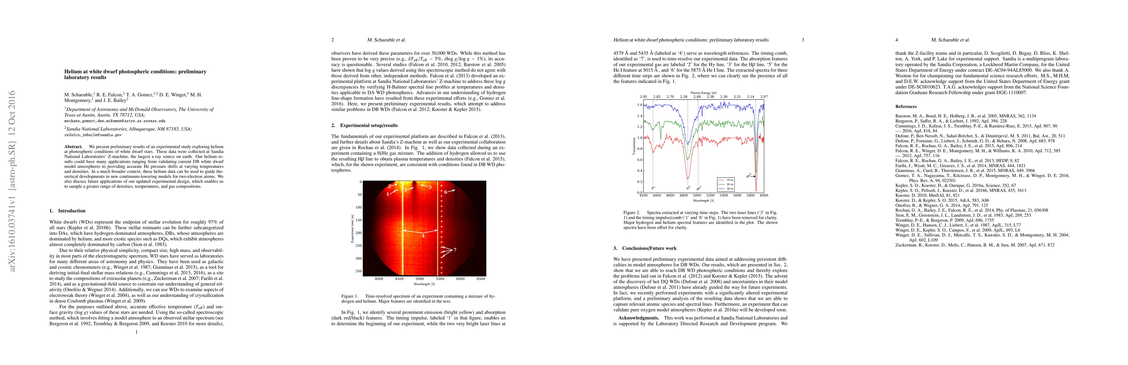 This research presents initial findings from experiments on helium under white dwarf photospheric conditions using Sandia National Laboratories' Z-machine. The results aim to validate white dwarf model atmospheres and inform new continuum-lowering models for two-electron atoms, with future experiments planned to cover a wider range of conditions.