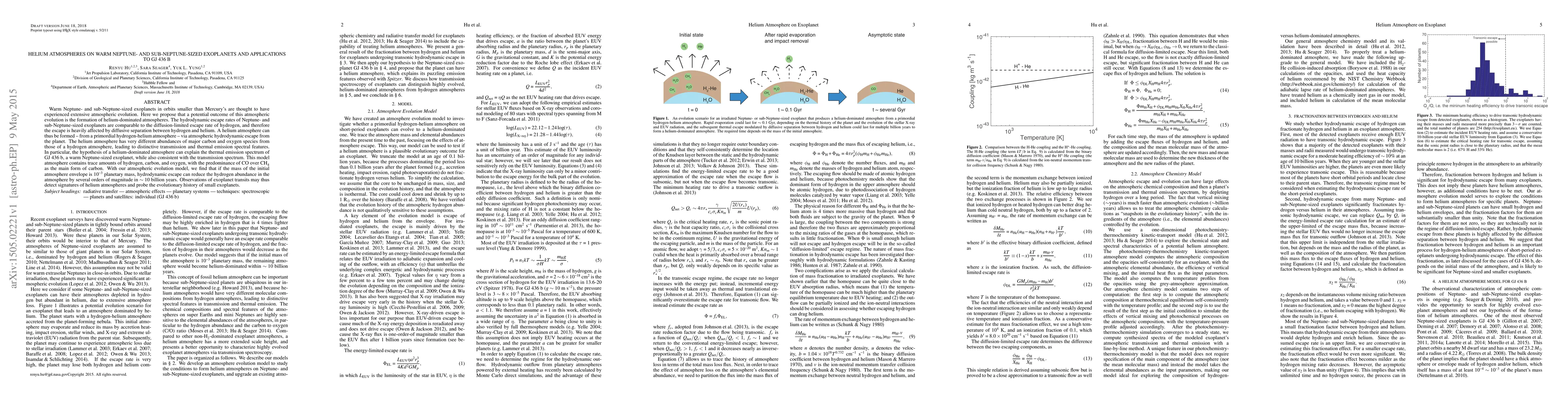 This paper proposes that warm Neptune- and sub-Neptune-sized exoplanets may develop helium-dominated atmospheres through hydrodynamic escape, leading to distinct spectral signatures. The model explains the thermal emission spectrum of GJ 436 b, suggesting a primordial atmosphere that evolved via atmospheric escape, with CO predominant over CH4.