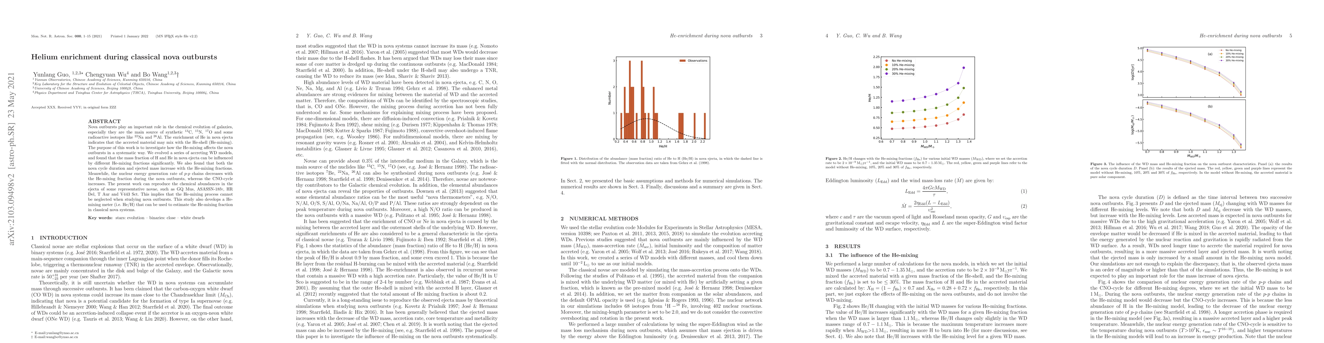 Research found that helium enrichment in nova outbursts is significantly influenced by helium mixing with an accreted material, leading to increased ejected mass and nuclear energy production patterns.
