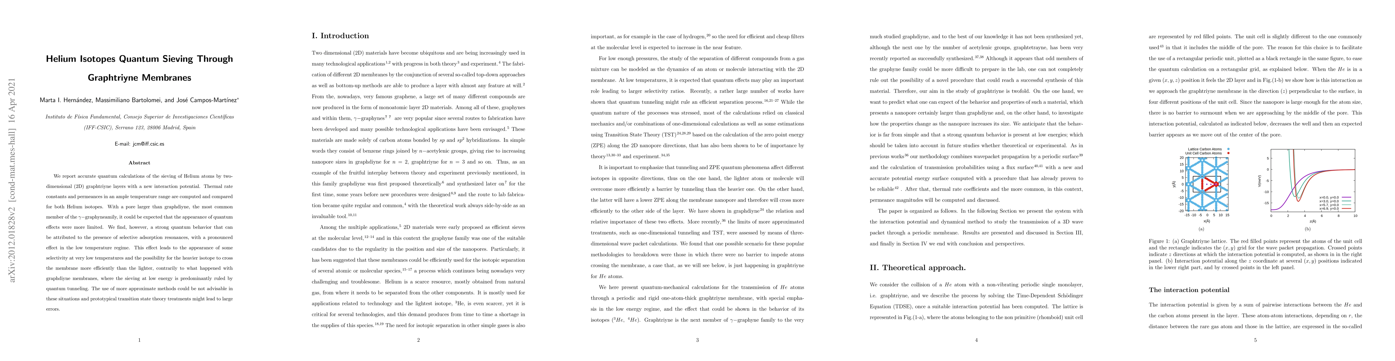 This paper reports quantum calculations showing that graphtriyne membranes can selectively sieve Helium isotopes, with the heavier isotope passing more efficiently at low temperatures due to selective adsorption resonances, contrary to the behavior observed in graphdiyne membranes where quantum tunneling predominates. Accurate quantum methods are essential to avoid significant errors in predicting such quantum effects.
