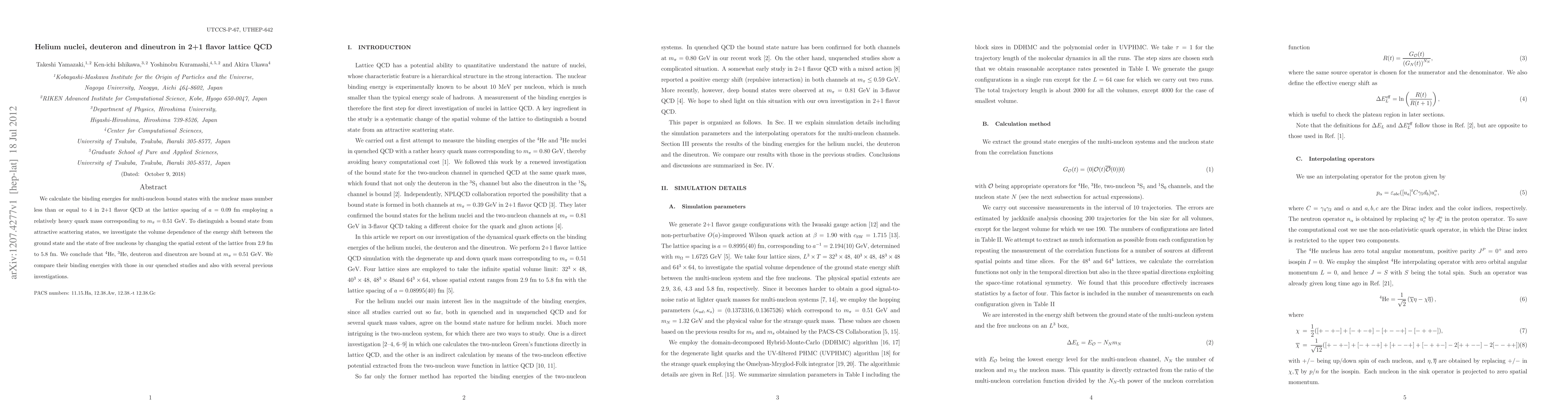 We calculate the binding energies for multi-nucleon bound states with the nuclear mass number less than or equal to 4 in 2+1 flavor QCD at the lattice spacing of a = 0.09 fm employing a relatively heavy quark mass corresponding to m_pi = 0.51 GeV. To distinguish a bound state from attractive scattering states, we investigate the volume dependence of the energy shift between the ground state and the state of free nucleons by changing the spatial extent of the lattice from 2.9 fm to 5.8 fm. We conclude that ^4He, ^3He, deuteron and dineutron are bound at m_pi = 0.51 GeV. We compare their binding energies with those in our quenched studies and also with several previous investigations.