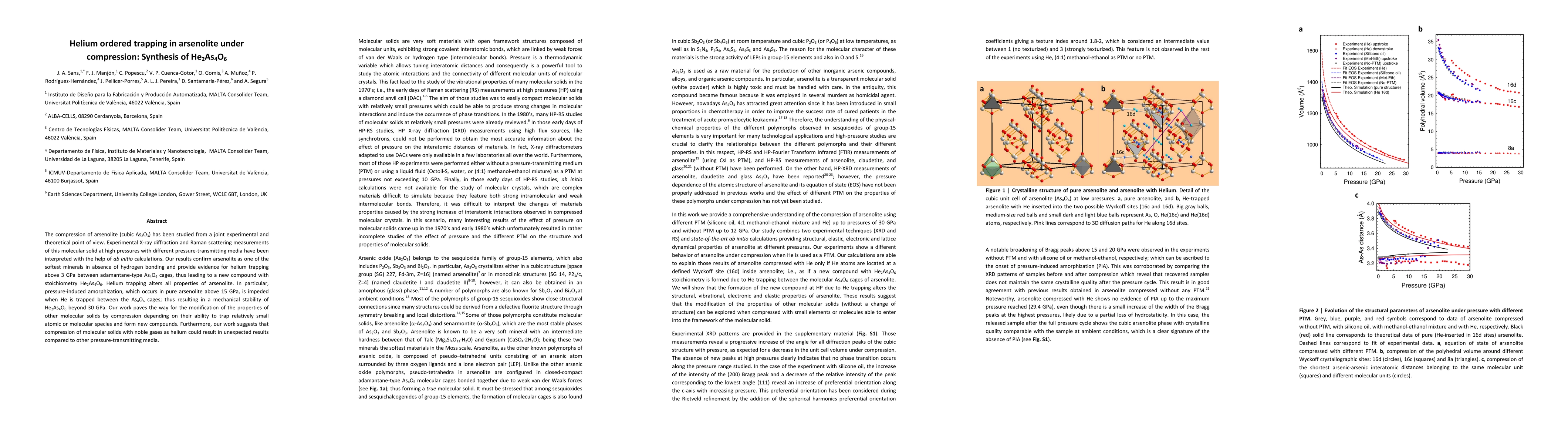 Researchers discovered a new compound, He2As4O6, formed when helium is trapped between adamantane-type As4O6 cages in arsenolite under compression, altering its properties and stability.
