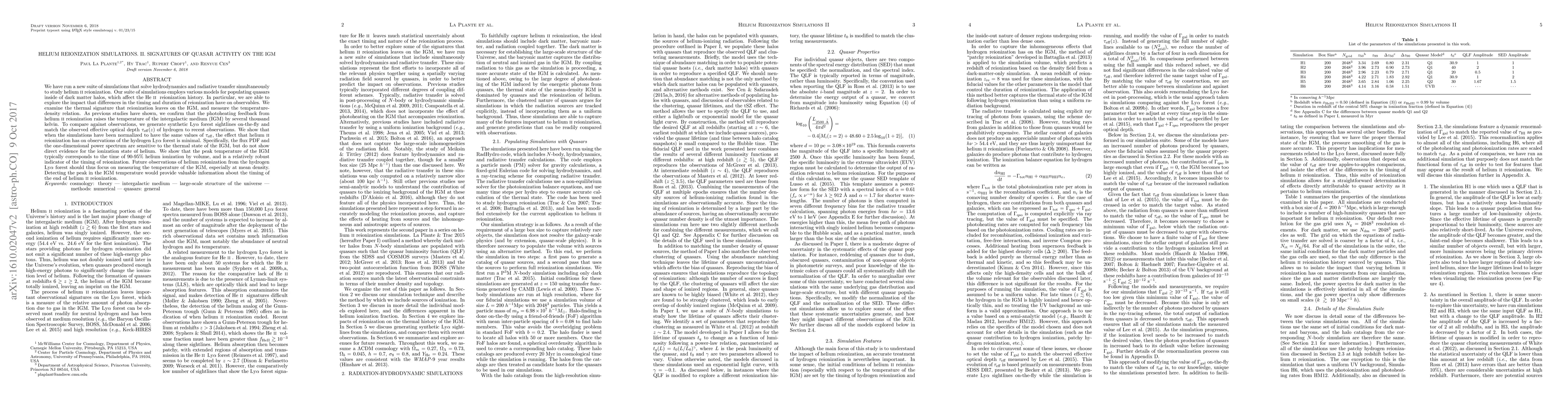 This paper presents simulations of helium II reionization, focusing on quasar activity's impact on the IGM. The study finds that while helium reionization significantly raises IGM temperatures, the effect on hydrogen Ly$\alpha$ forest observations is minimal, suggesting future observations should target IGM temperature measurements to infer reionization timing.