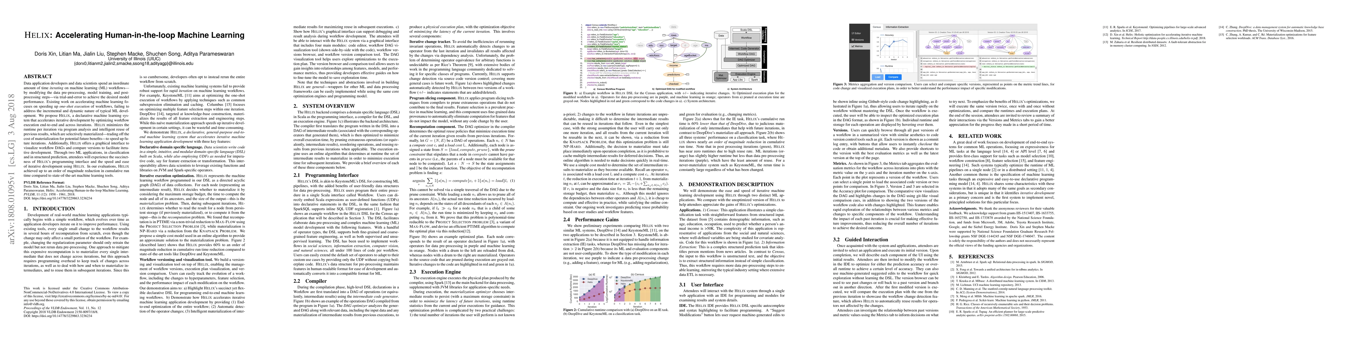 Helix accelerates human-in-the-loop machine learning by optimizing workflow execution and materializing selective results to reduce cumulative run time by an order of magnitude.