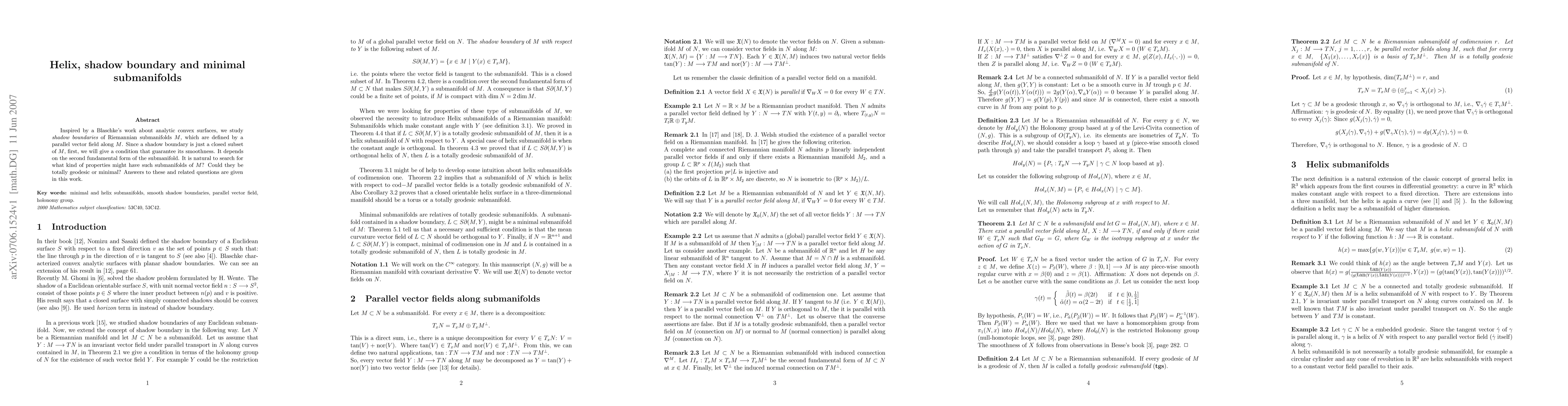Inspired by a Blaschke's work about analytic convex surfaces, we study {\em shadow boundaries} of Riemannian submanifolds $M$, which are defined by a parallel vector field along $M$. Since a shadow boundary is just a closed subset of $M$, first, we will give a condition that guarantee its smoothness. It depends on the second fundamental form of the submanifold. It is natural to search for what kind of properties might have such submanifolds of $M$? Could they be totally geodesic or minimal? Answers to these and related questions are given in this work.