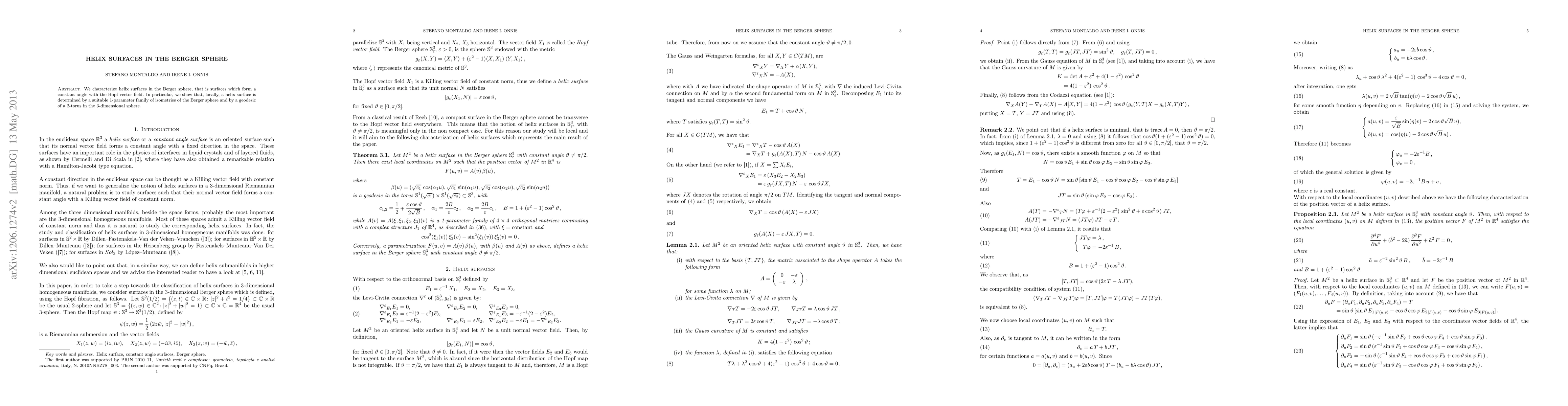 This paper characterizes helix surfaces in the Berger sphere, demonstrating that they are locally determined by a 1-parameter family of isometries and a geodesic of a 2-torus in the 3-dimensional sphere, maintaining a constant angle with the Hopf vector field.
