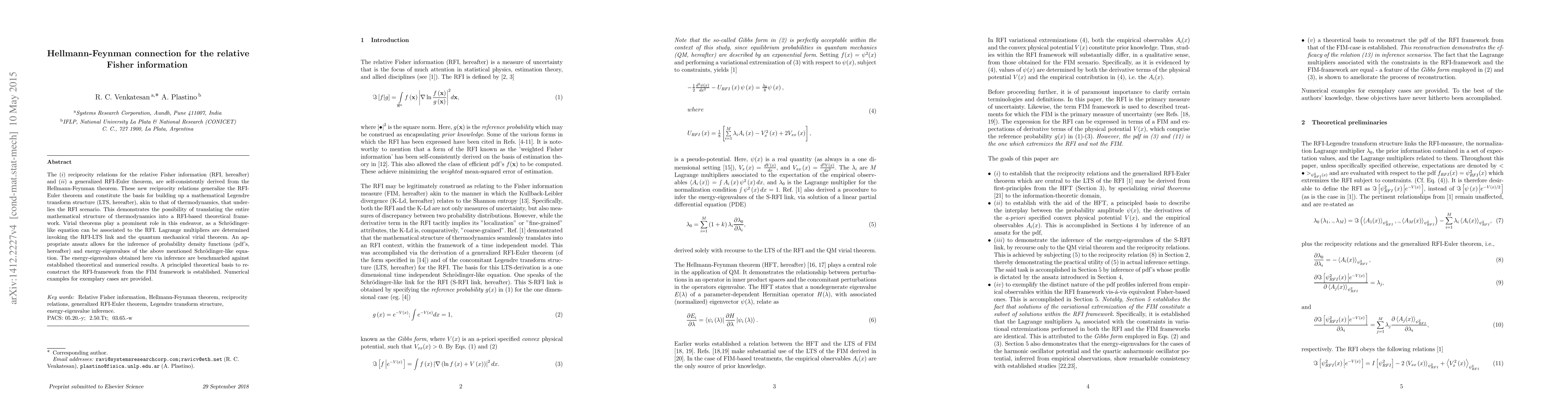 This paper derives reciprocity relations and a generalized RFI-Euler theorem from the Hellmann-Feynman theorem, establishing a mathematical Legendre transform structure for relative Fisher information akin to thermodynamics. It uses virial theorems and an ansatz to infer probability density functions and energy-eigenvalues, benchmarking them against established results.