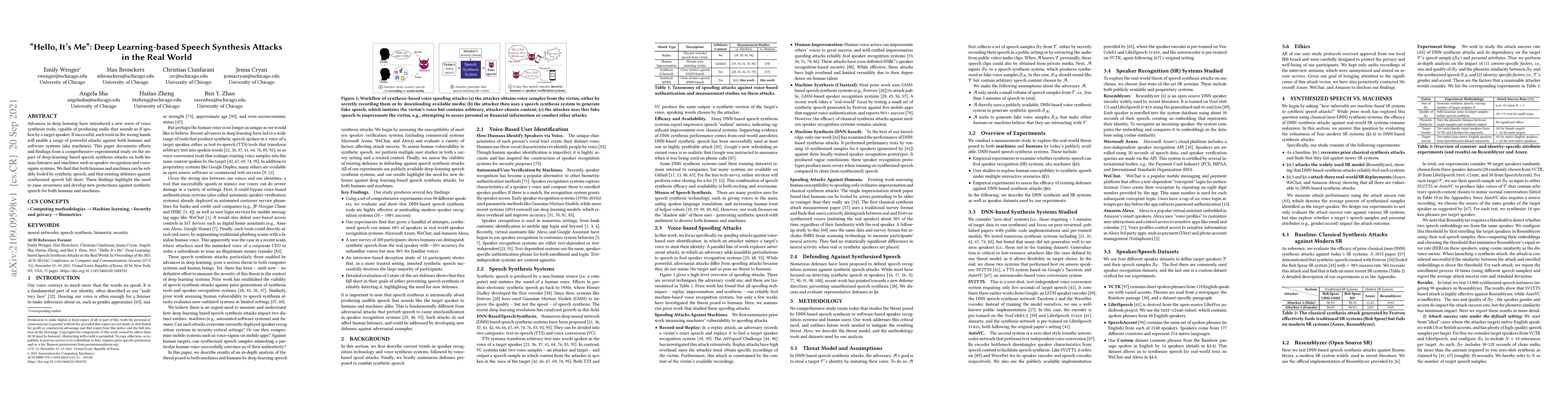 Researchers found that deep learning-based speech synthesis attacks can reliably fool both humans and machines, highlighting the need for new protections against synthetic speech.