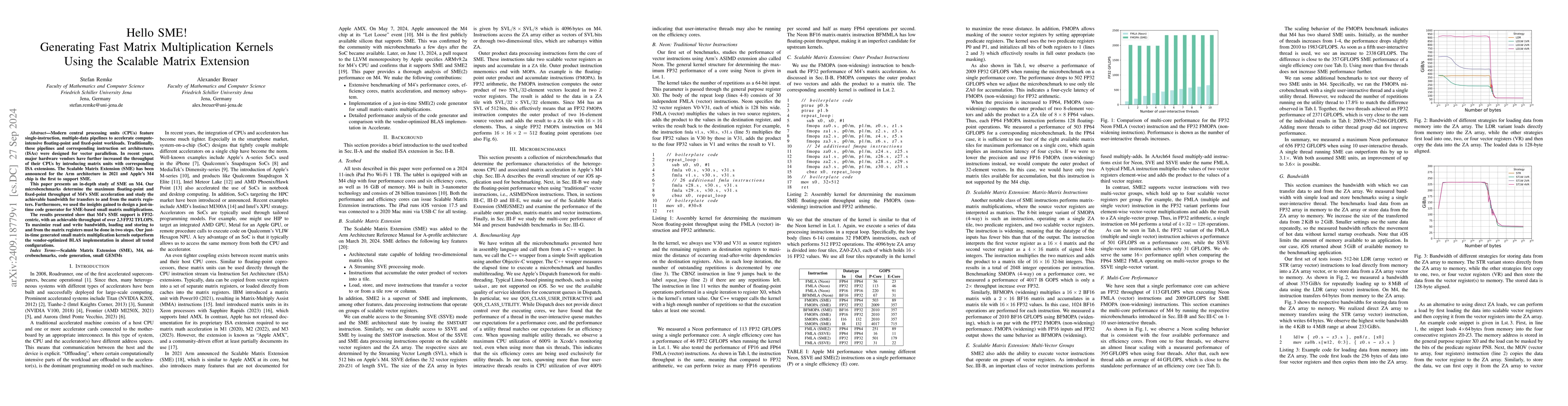 This paper investigates the Scalable Matrix Extension (SME) on Apple's M4 chip, determining its throughput and bandwidth for SME-based operations. It designs a just-in-time code generator for small matrix multiplications, achieving superior performance over the vendor-optimized BLAS implementation.
