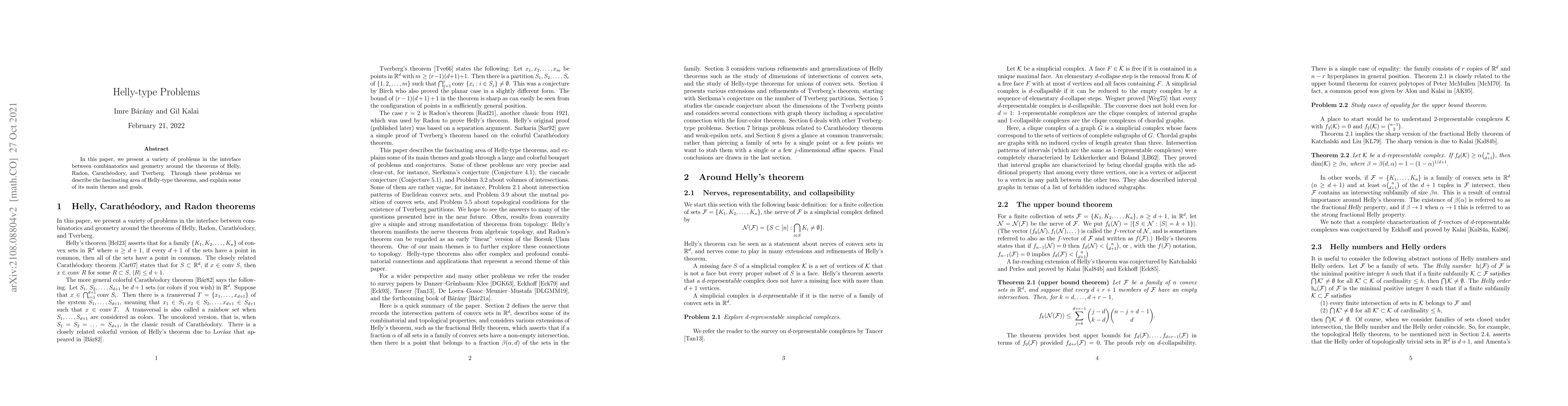 This paper explores combinatorial and geometric problems related to Helly, Radon, Carathéodory, and Tverberg theorems, highlighting the intriguing field of Helly-type theorems and outlining its central themes and objectives.