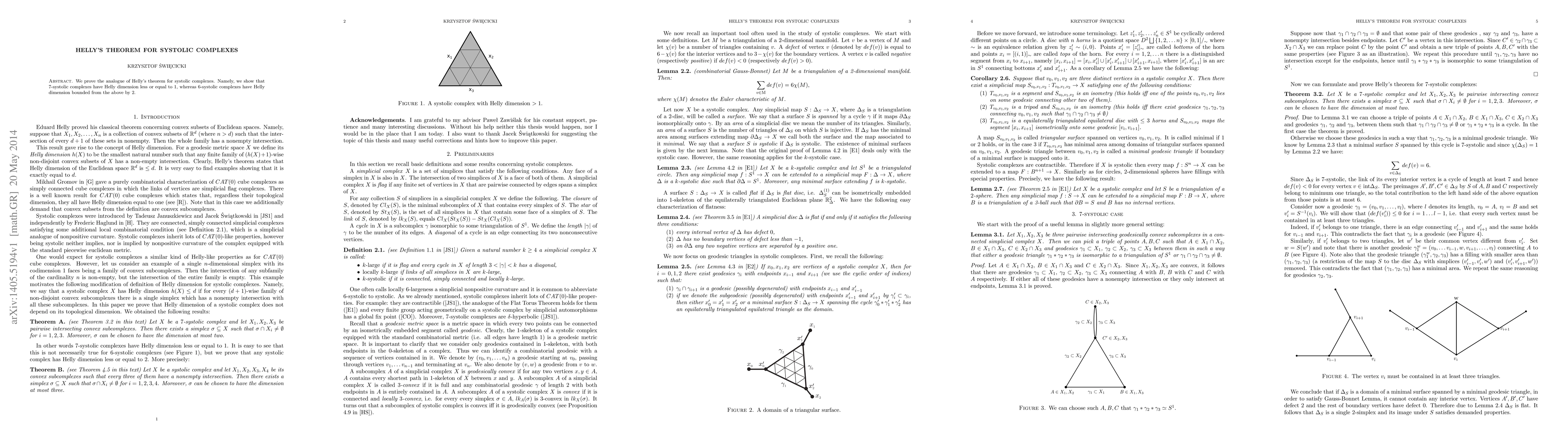 The paper proves the analogue of Helly's theorem for systolic complexes by analyzing 7-systolic and 6-systolic complexes, utilizing concepts like disc quotients, simplicial maps, and minimal surfaces.
