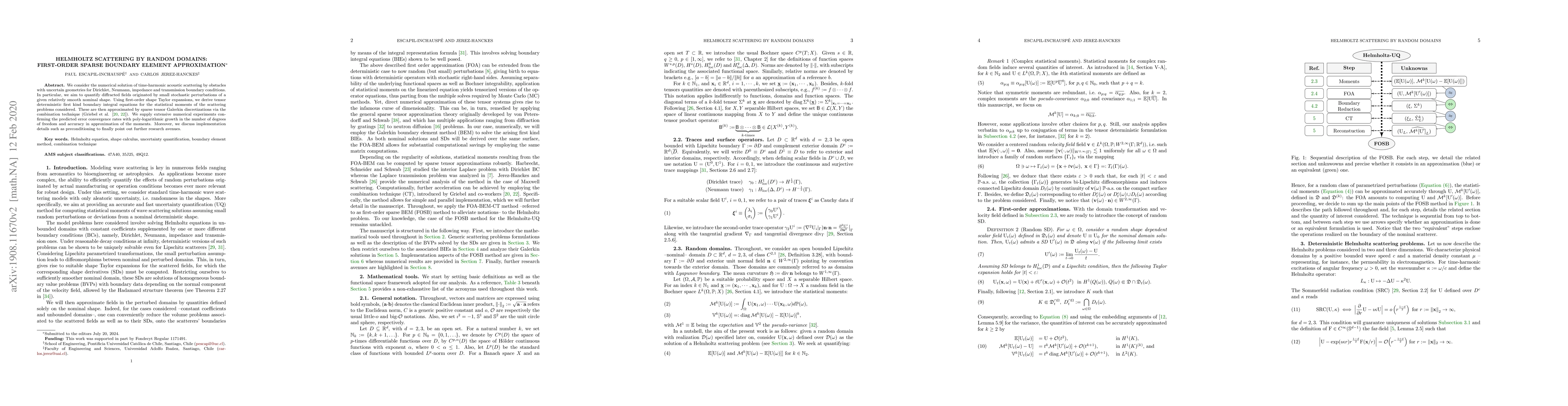 This paper proposes a sparse boundary element method for solving acoustic scattering problems with uncertain geometries, using first-order shape Taylor expansions to derive boundary integral equations. Numerical experiments validate the method's error convergence and efficiency.