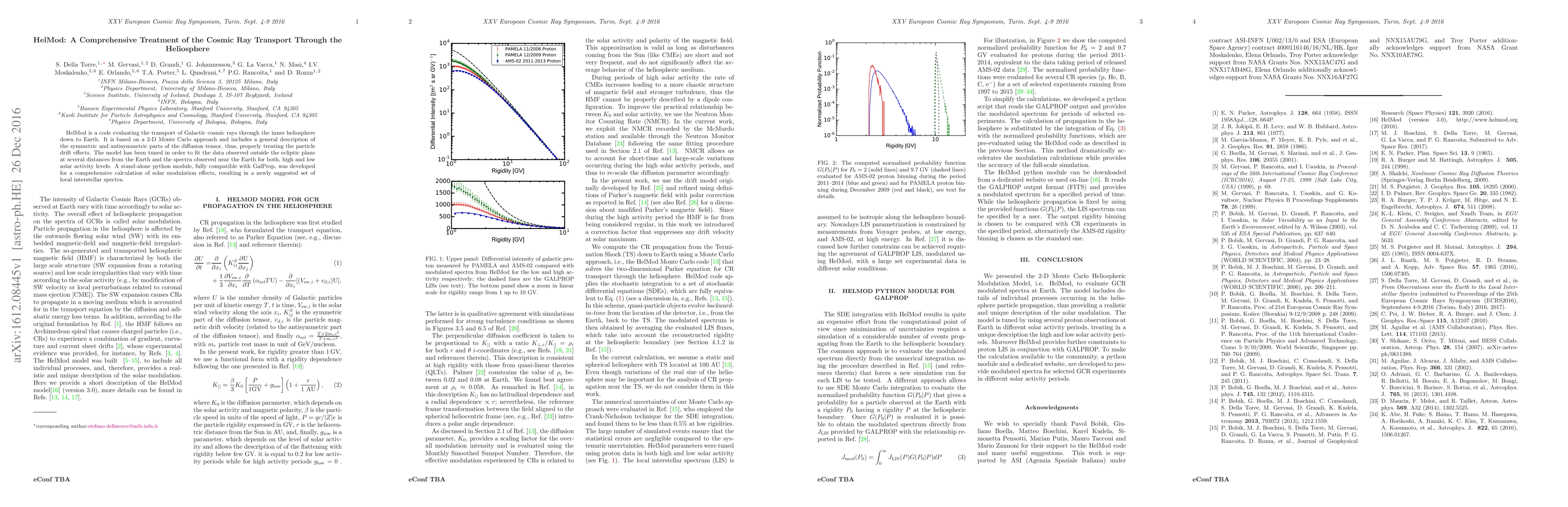 HelMod is a 2-D Monte Carlo code for modeling the transport of Galactic cosmic rays through the heliosphere, incorporating drift effects and fitting observational data. It provides a stand-alone Python module compatible with GalProp, leading to new local interstellar spectra.